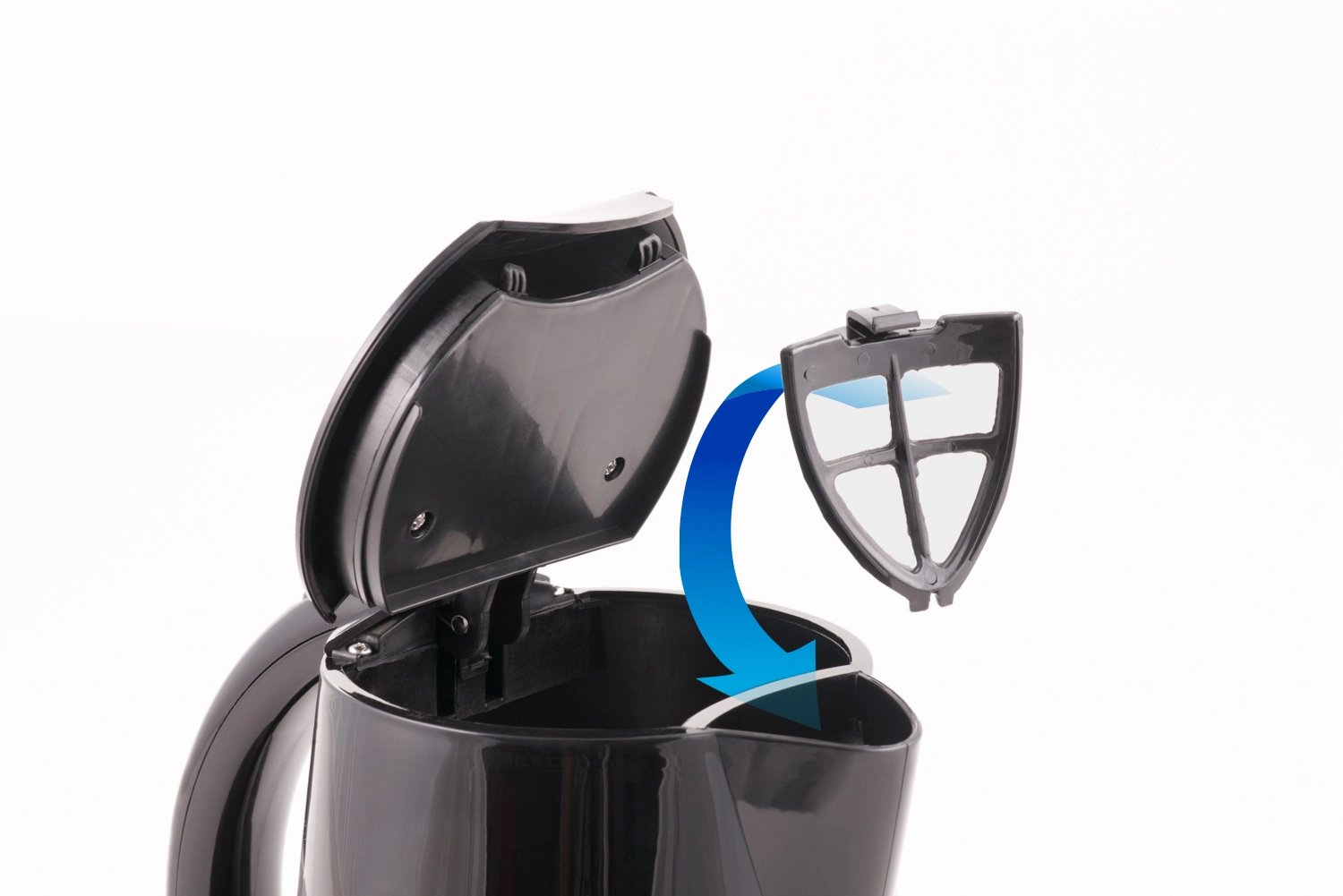 Filter na zachytávanie nečistôt z vody umiestnený vovnútri kanvice je možné ľahko vybrať a vyčistiť.