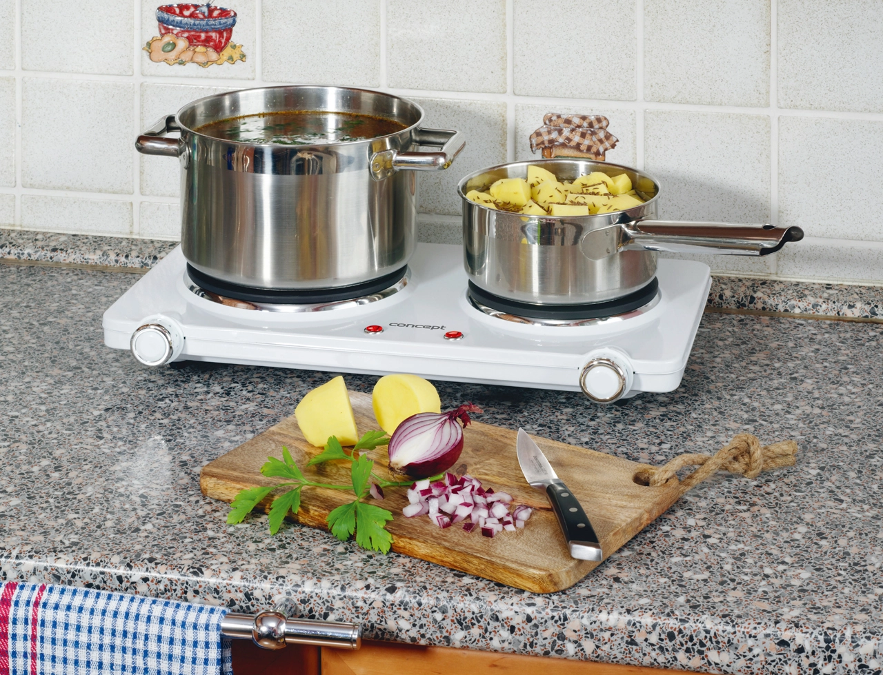 Dvojplatničkový elektrický varič od Conceptu Vás nikdy neopustí. Môžete ho zobrať so sebou na chatu, chalupu alebo napríklad aj do penziónu. Vďaka svojej nízkej váhe sa s ním dá ľahko manipulovať. Svojimi rozmermi Vám spotrebič dovolí po vychladnutí pohodlne ho odložiť napríklad do skrine, kde zaberie minimum miesta.