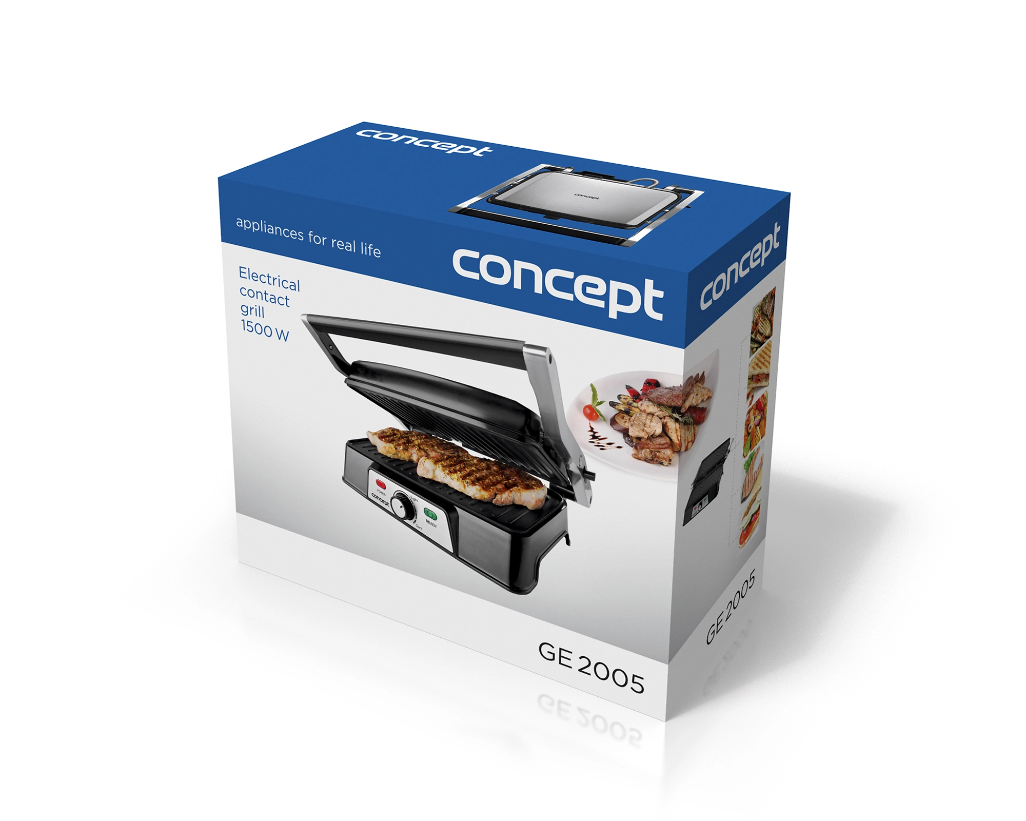 Príkon 1500 W umožní rýchle nahriatie grilu a umožní perfektné prepečenie aj vysokých steakov. Pomocou regulátora teploty si nastavíte vhodnú teplotu na prípravu rôznych druhov zeleniny, mäsa, ovocia a pod. Vaše steaky už nikdy nebudú príliš alebo málo prepečené. Kvalitné nepriľnavé liatinové platne zaistia Vášmu grilu dlhú životnosť. Môžete si pochutnávať na grilovaných dobrotách v každom ročnom období, pretože gril môžete používať doma aj vonku. Pri použití v domácnosti odporúčame gril postaviť pod odsávač. Údržba grilu je absolútne jednoduchá. Grilovacie platne stačí utrieť papierovou utierkou a Váš gril bude zasa ako zo škatuľky