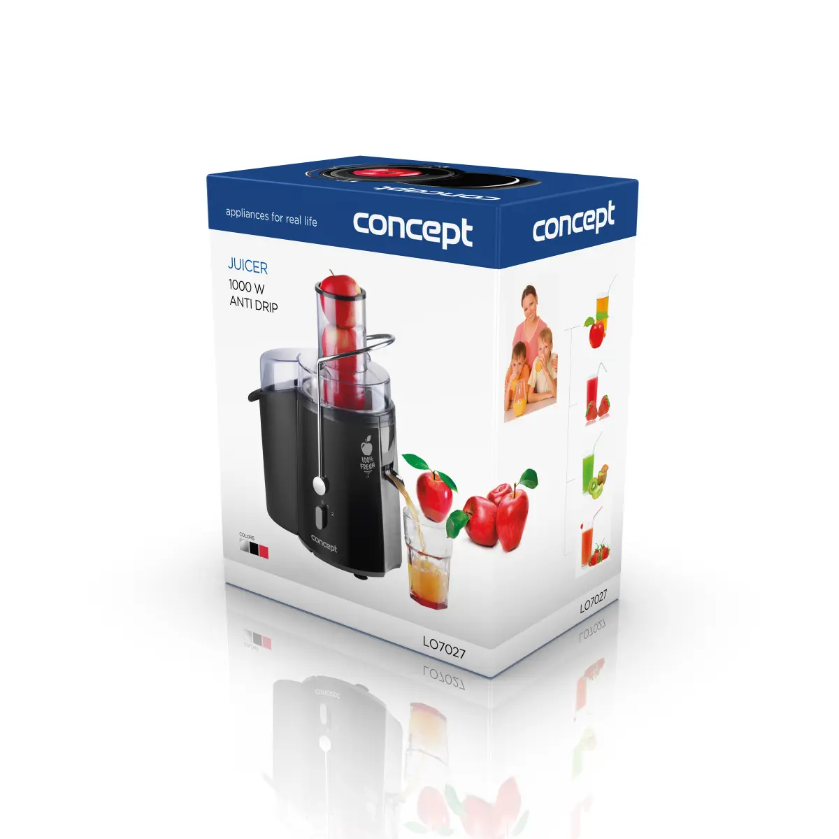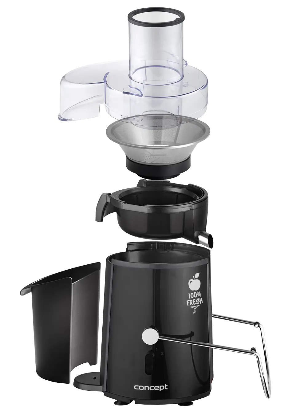 Ovocné šťavy a kokteily z ovocia vynikajú nielen svojou lahodnou chuťou, ale predovšetkým vysokým obsahom vitamínov, minerálov a ďalších biologicky významných látok. Potešte sa lahodnou chuťou 100% ovocnej alebo zeleninovej šťavy z odšťavovača Concept. Odšťavovač Concept s príkonom 1000 W Vám umožní pripraviť naraz až 1 l čerstvej šťavy.