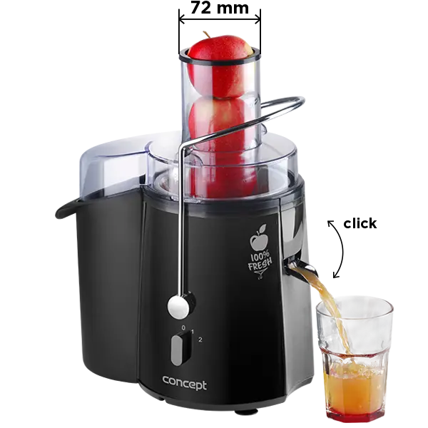 Už Vás nebaví tráviť v kuchyni všetok svoj čas? Chcete mať zdravú čerstvú šťavu denne na svojom stole? Tak práve pre Vás je tu lis na ovocie a zeleninu od Conceptu. Vďaka svojmu 72 mm veľkému plniacemu otvoru ušetríte množstvo času. Nemusíte sa zdržiavať zbytočným krájaním ovocia, zvládne aj celé plody.