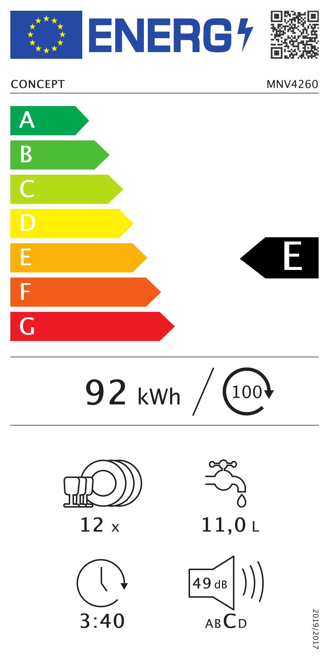 Spotreba energie štandardného cyklu: 0,90 kWh