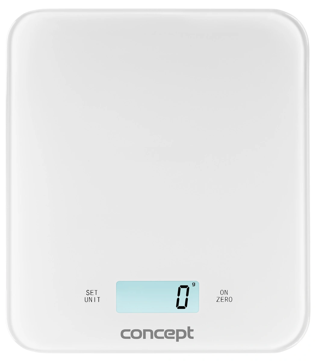 Odmerky a hrnčeky z domu preč! S kuchynskou váhou Concept zvážite všetko, čo si zmyslíte. Hladký povrch váhy je veľmi odolný a ľahko sa čistí. Vďaka elegantnému designu zapadne do každej kuchyne. Na výber máte hneď zo 4 jednotiek váženia - g/kg/oz/lb. Krok váženia je po 1 grame, môžete očakávať dokonalú presnosť váženia. Tara funkcia, čiže dovažovanie, je samozrejmosťou.