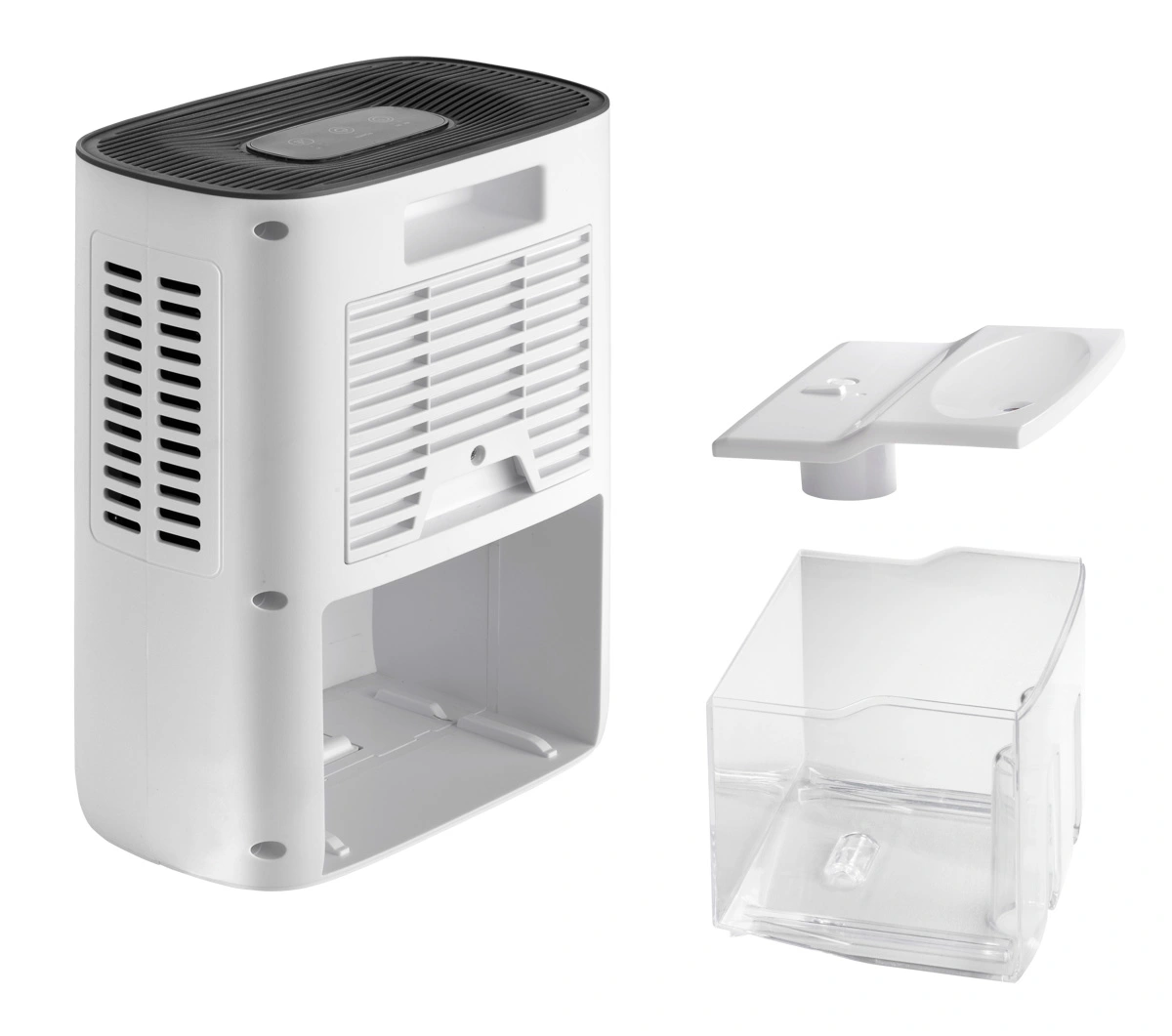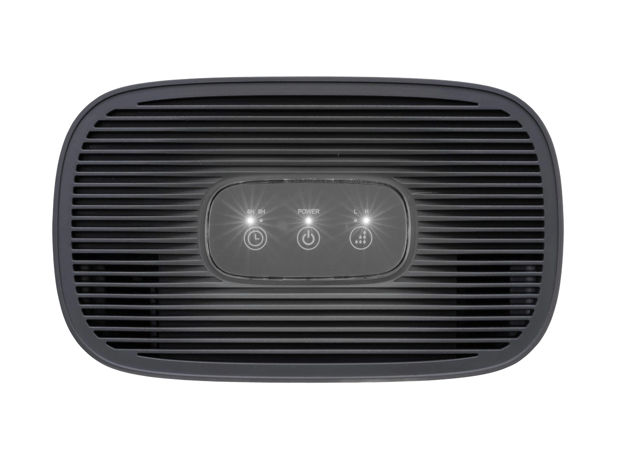 Odvlhčovač OV1000 zvládne skondenzovať až 600 ml vody za jediný deň. Po naplnení 1,5 l nádobky sa prístroj automaticky vypne. Pokiaľ je zásobník zle vložený, či chýba, rozsvieti sa červená kontrolka.
