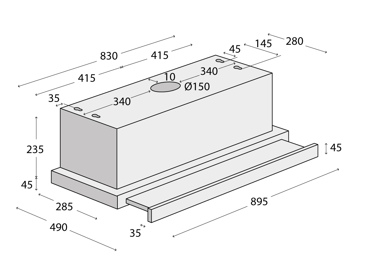 OPV3890 Digestor vstavaný výsuvný 90cm SINFONIA