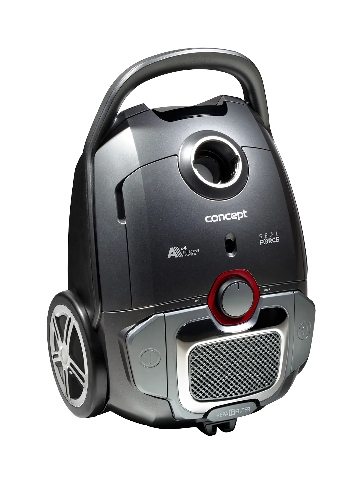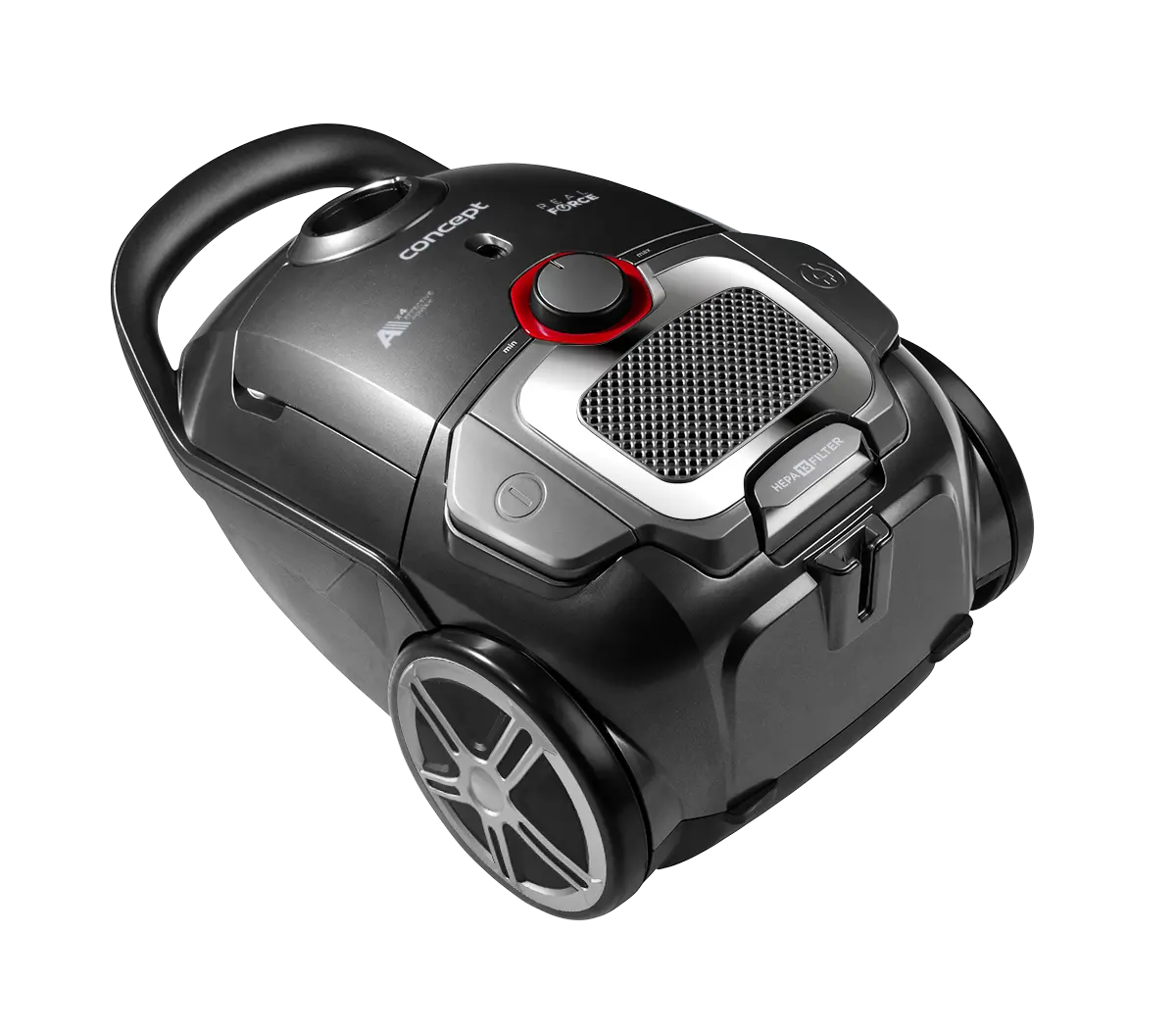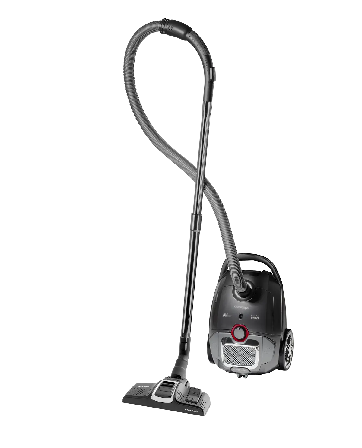 Vysávač má chromové prvky a chrómovú teleskopickou tyč. S praktickým držadlom ho môžete jednoducho premiestniť. Pogumovaná ergonomická rukoväť zvyšuje pohodlie pri upratovaní.