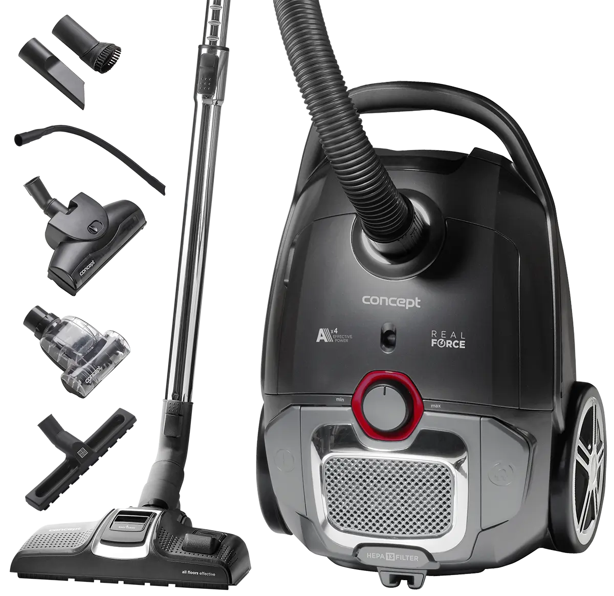 Príslušenstvo tohto siláka je obrovské. Ak máte domáceho miláčika, tak je to pre Vás ten pravý vysávač. Obsahuje totiž aj kefku na zvieracie chlpy a turbokefu. Štrbinová hubica je expertom na ťažko dostupné miesta a kefa na koberce Vás zbaví hlboko usadeného prachu v kobercoch. Štrbinová hubica a hubica s kefkou sú zakomponované v samotnom tele vysávača, takže ju budete mať neustále po ruke.
