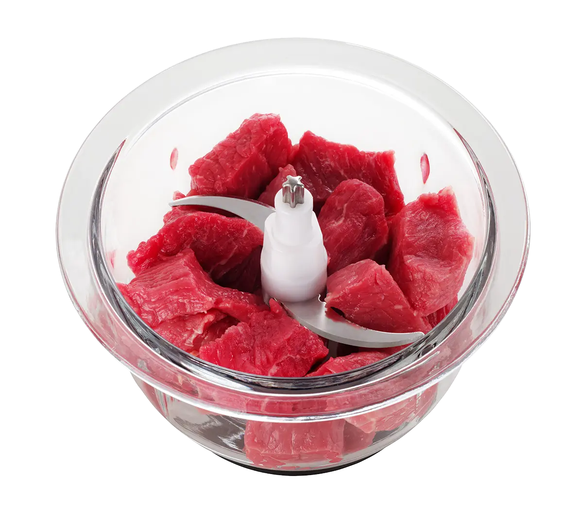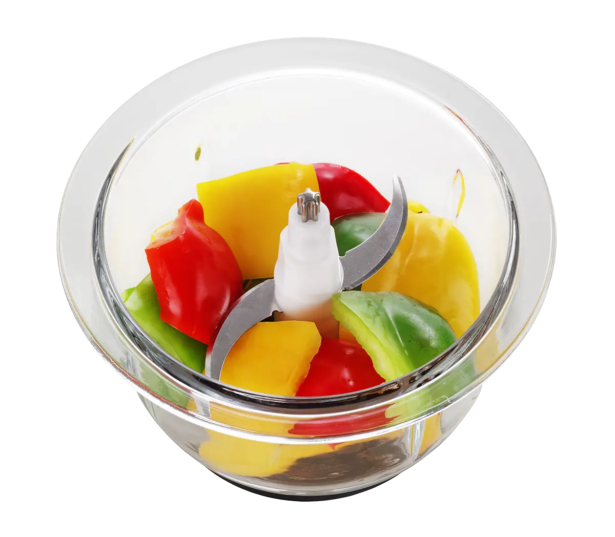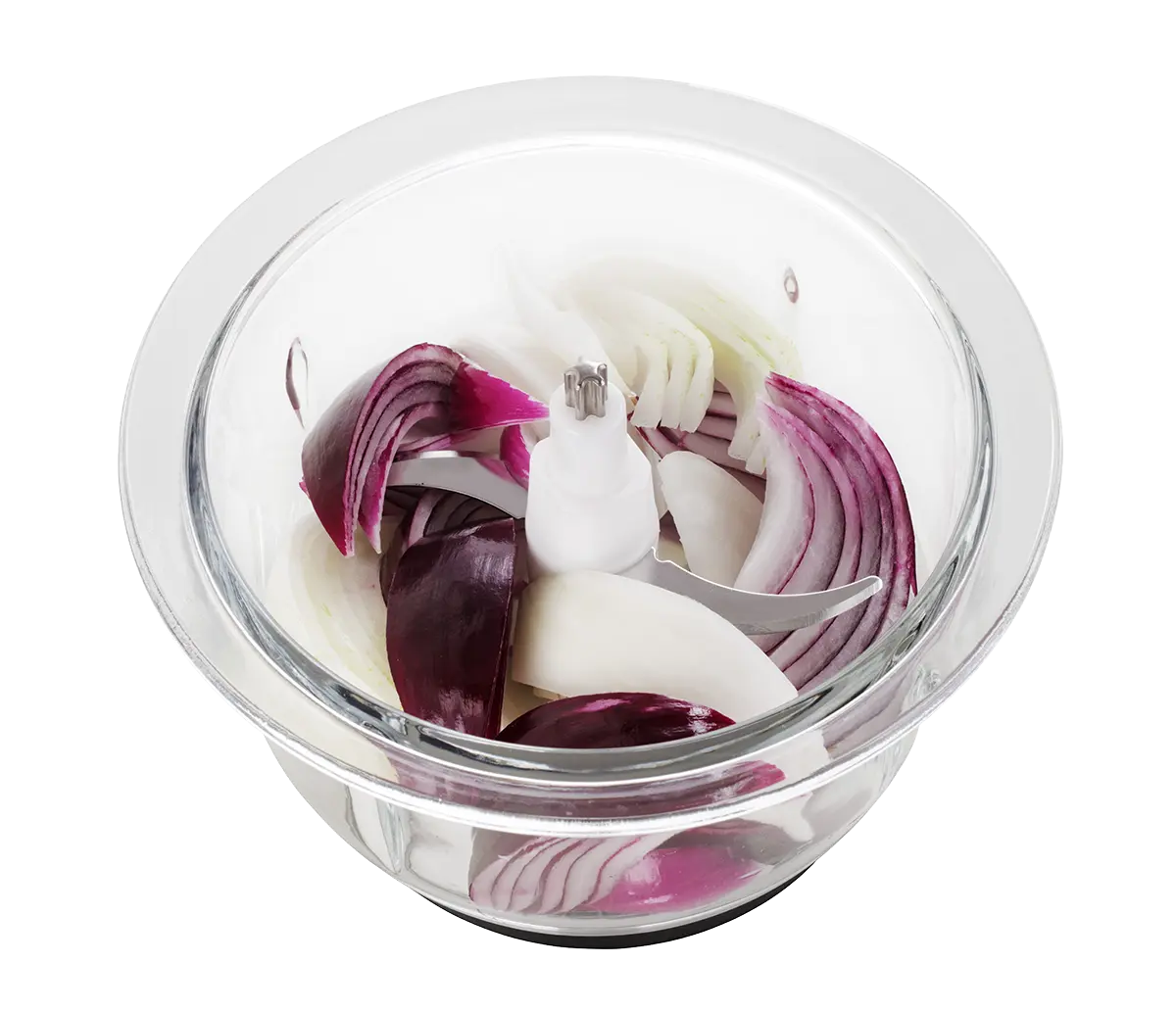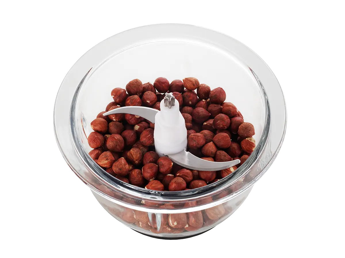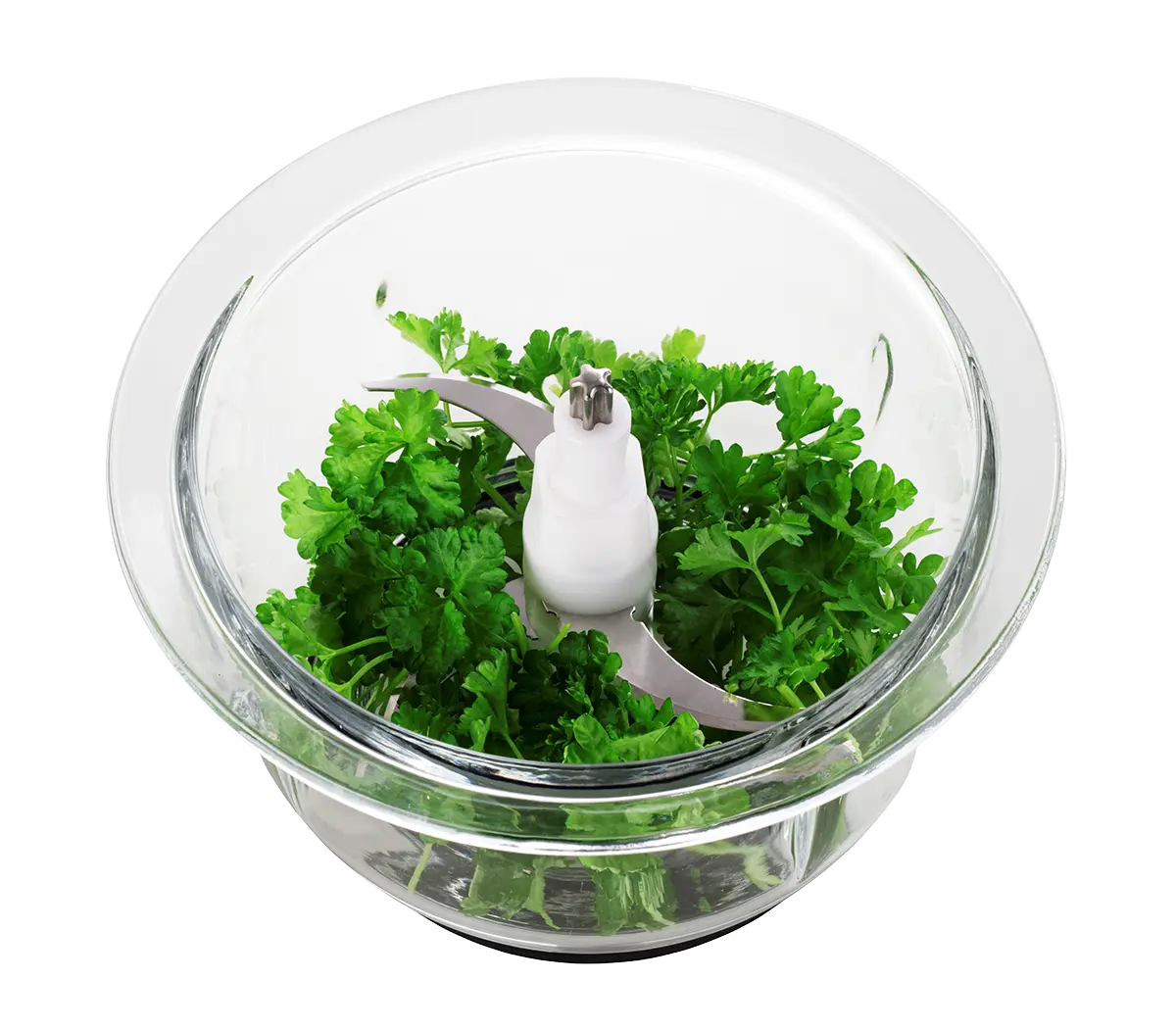 Výborný pomocník na sekanie mäsa, ovocia, zeleniny alebo byliniek. Vďaka výkonnému 500 W motoru a veľkej sklenenej nádobe si hravo poradí i s väčším množstvom potravín. Nezastavia ho ani orechy, ktorými môžete dozdobiť váš obľúbený múčnik.