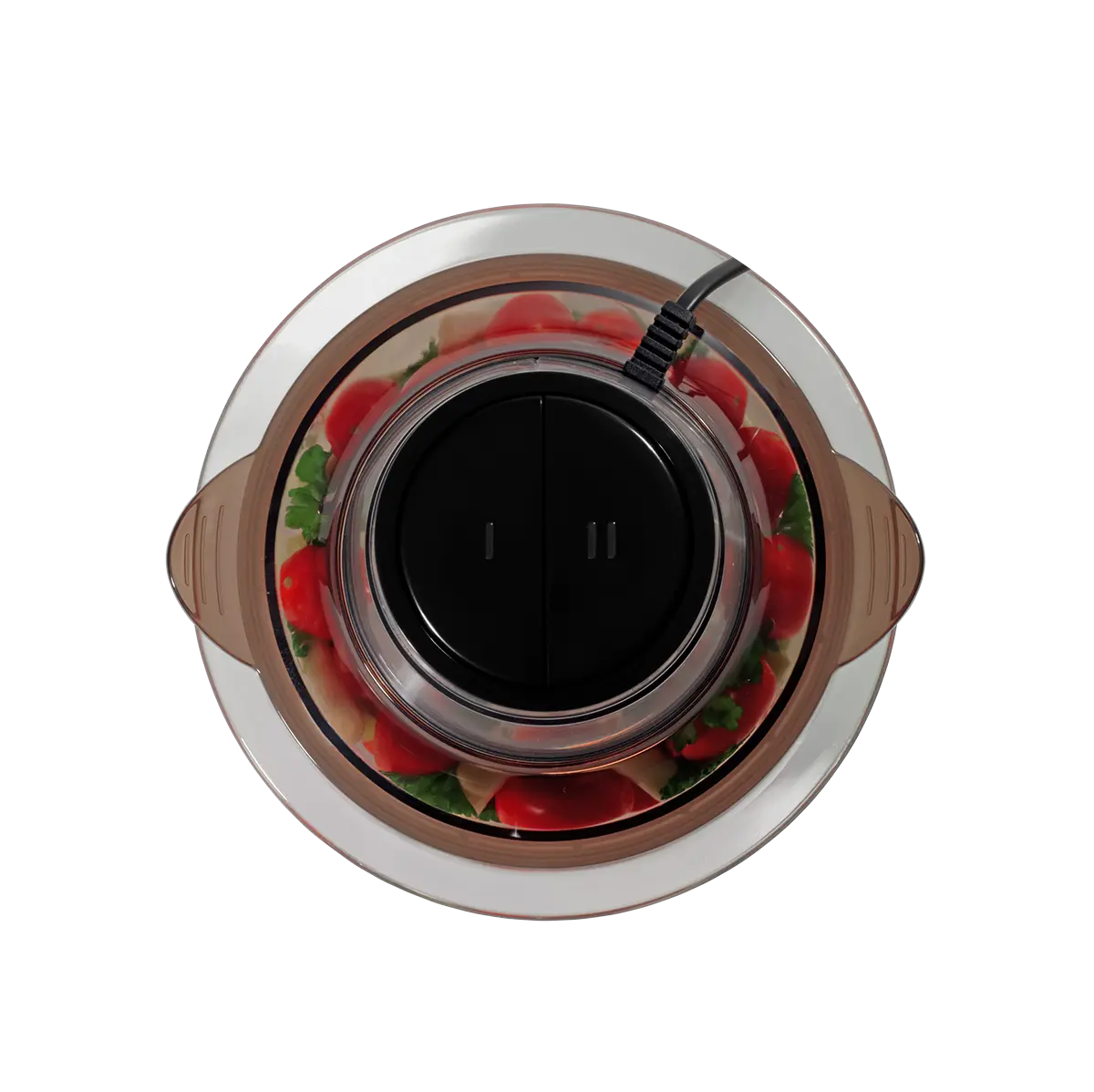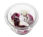 Ovládanie sekáčika je veľmi jednoduché a intuitívne. Stačí naplnenú nádobu uzavrieť vekom, nasadiť motor a zvoliť rýchlosť sekania. Ponúka 2 rýchlosti, ktoré si môžete jednoducho regulovať podľa aktuálnej potreby. Dno nádoby je vybavené protišmykovou podložkou, ktorá zaisťuje maximálnu stabilitu počas prevádzky. Po ukončení práce sekáčik ľahko rozoberiete a umyjete.