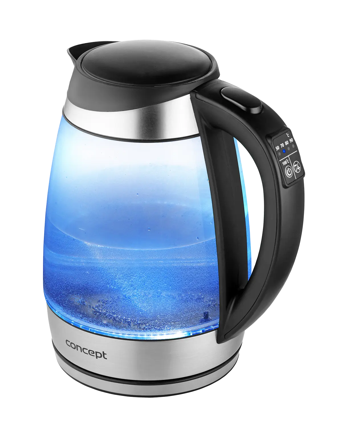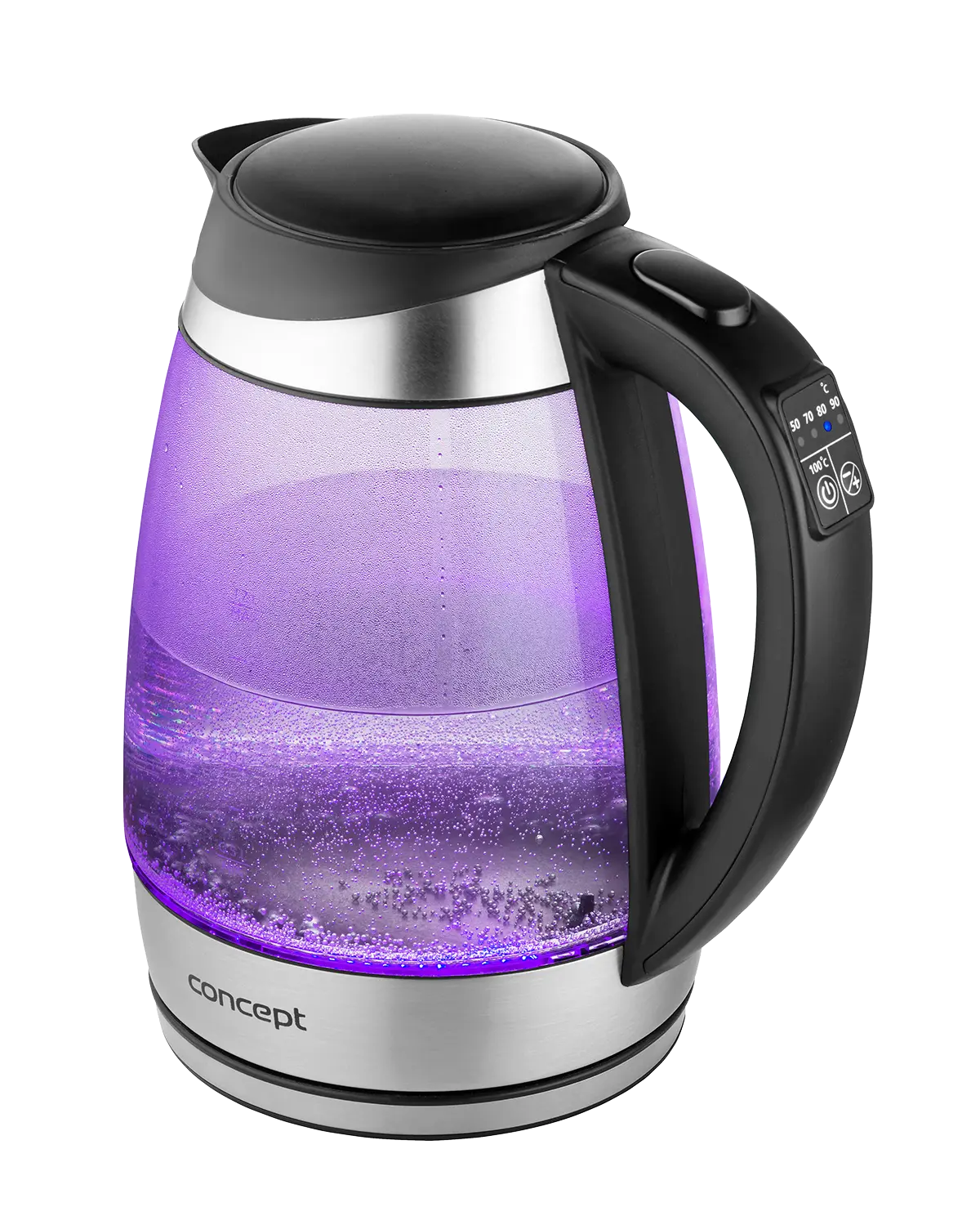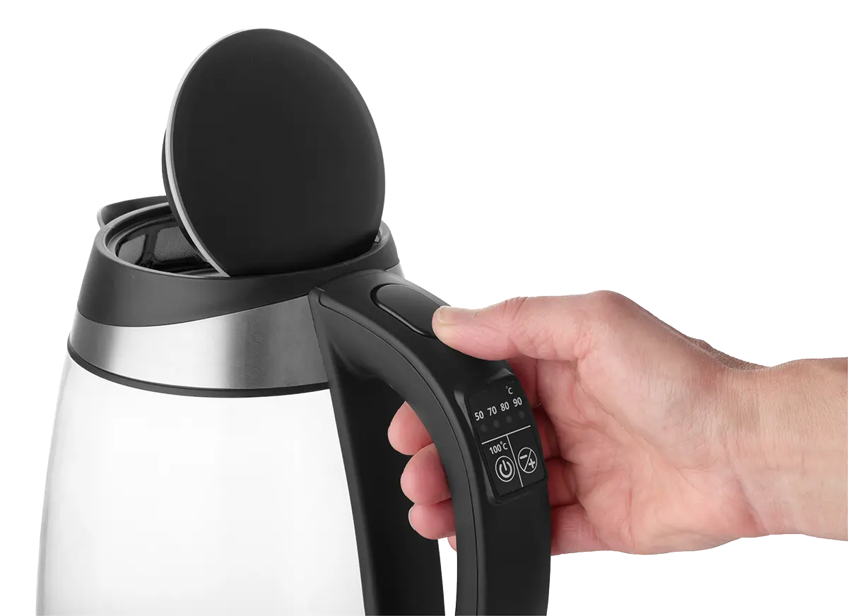 Rýchlovarná kanvica je vybavená digitálnym ovládaním s možnosťou nastavenia 7 stupňov teploty, takže v nej pripravíte všetko od detských príkrmov po najrôznejšie druhy čajov. Vyniká dizajnom dymového skla a nerezu s farebným podsvietením.