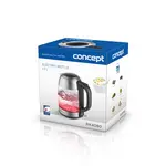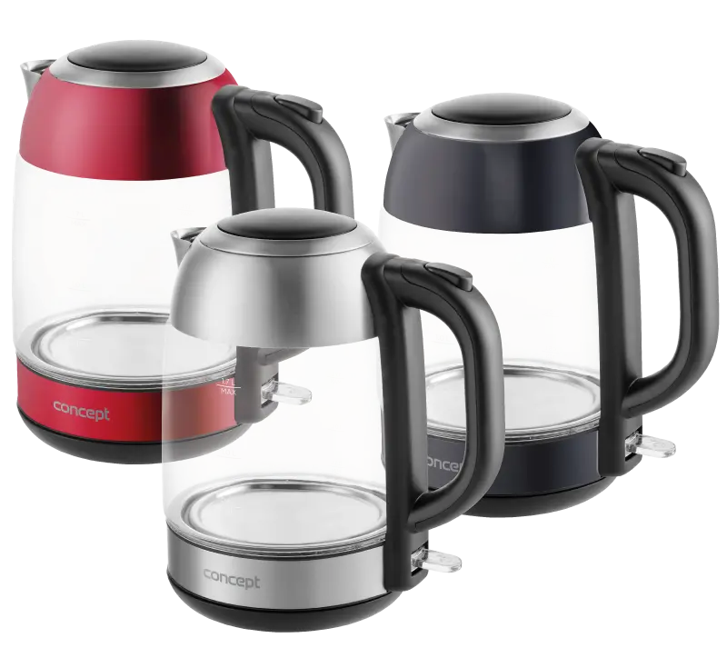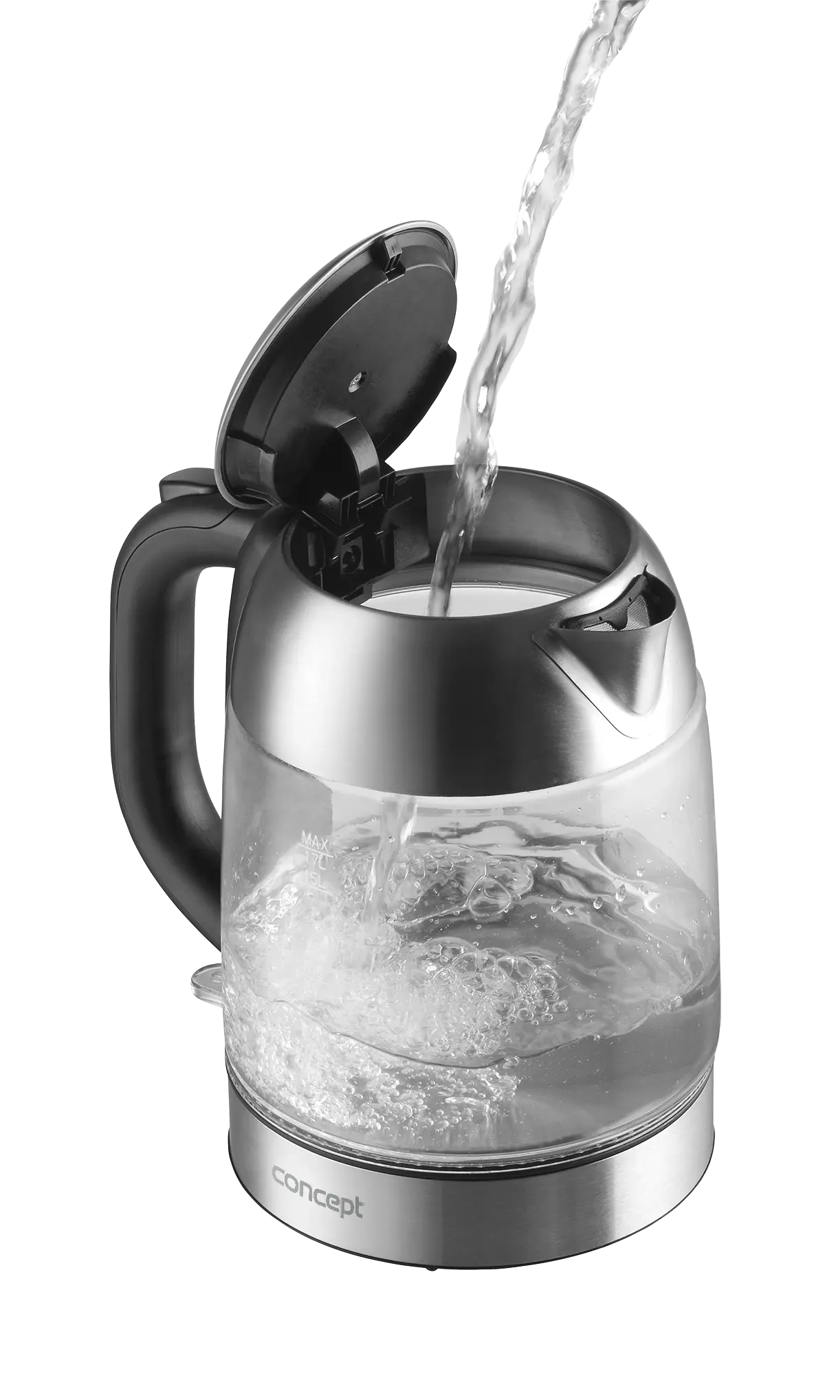 Sklenená rýchlovarná kanvica 1,7 l Concept RK4082; Borosilikátové sklo; Značkový konektor STRIX; 3 farebné varianty; Design; Rýchlovarná kanvica RK4082 je spojením elegantného designu a kvalitného spracovania. Je opatrená prehľadným vodoznakom a LED di...
