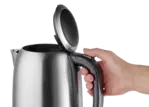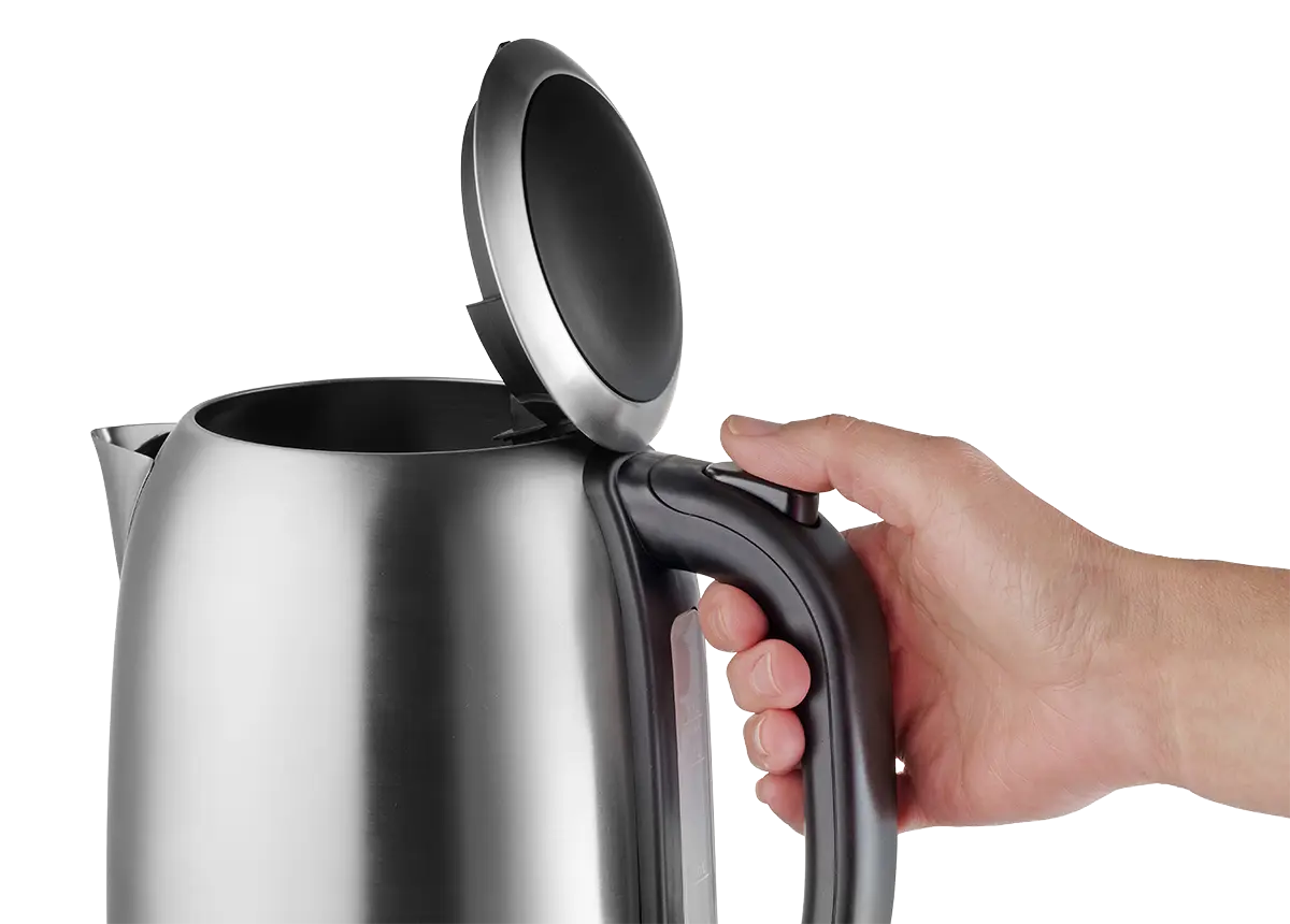 Kanvica je opatrená širokým hrdlom pre ľahké nalievanie vody do šálok a tlačidlom v rukoväti pre rýchle otváranie veka. Praktický je aj jemný filter proti vodnému kameňu a otočná základňa, ktorá zrýchľuje manipuláciu s kanvicou. Vďaka vodoznaku budete mať dokonalý prehľad o množstve vody vo vnútri kanvice.