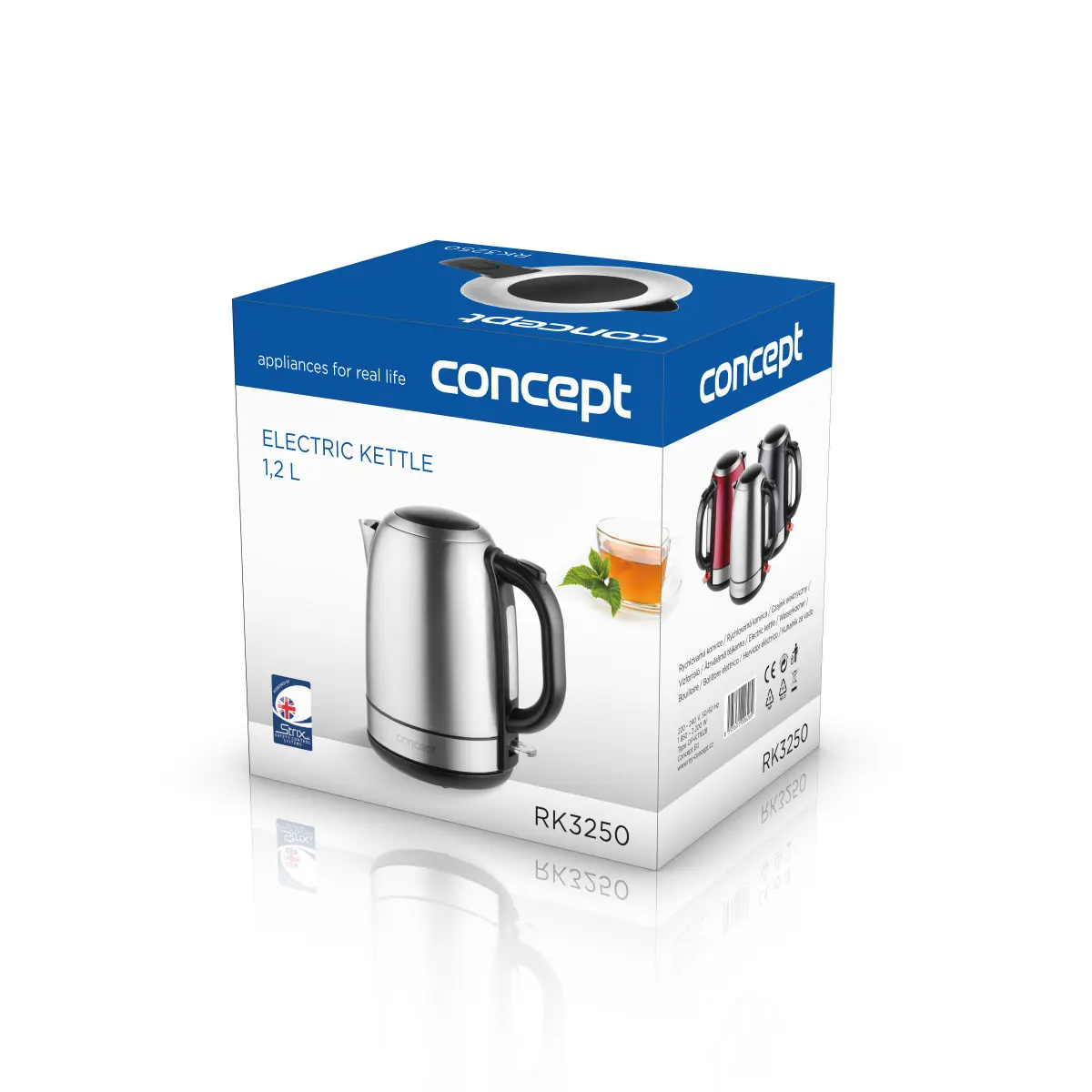 Rýchlovarná konvica RK3250 je vybavená skrytým vyhrievacím telesom a vyberateľným filtrom pre ľahkú a rýchlu údržbu.