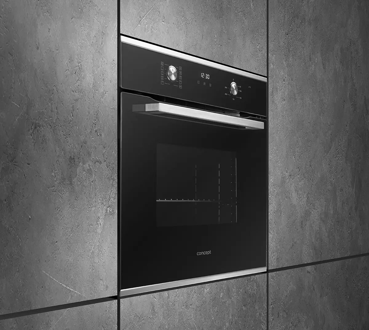 Moderný design podčiarkne elegantné čierne sklo doplnené o jemné nerezové prvky. Rúra ETV5760M perfektne zapadne do akejkoľvek kuchynskej linky. Ľahko ju skombinujete s ostatnými vstavanými spotrebičmi Concept, čím docielite dokonale zladenú kuchyňu.