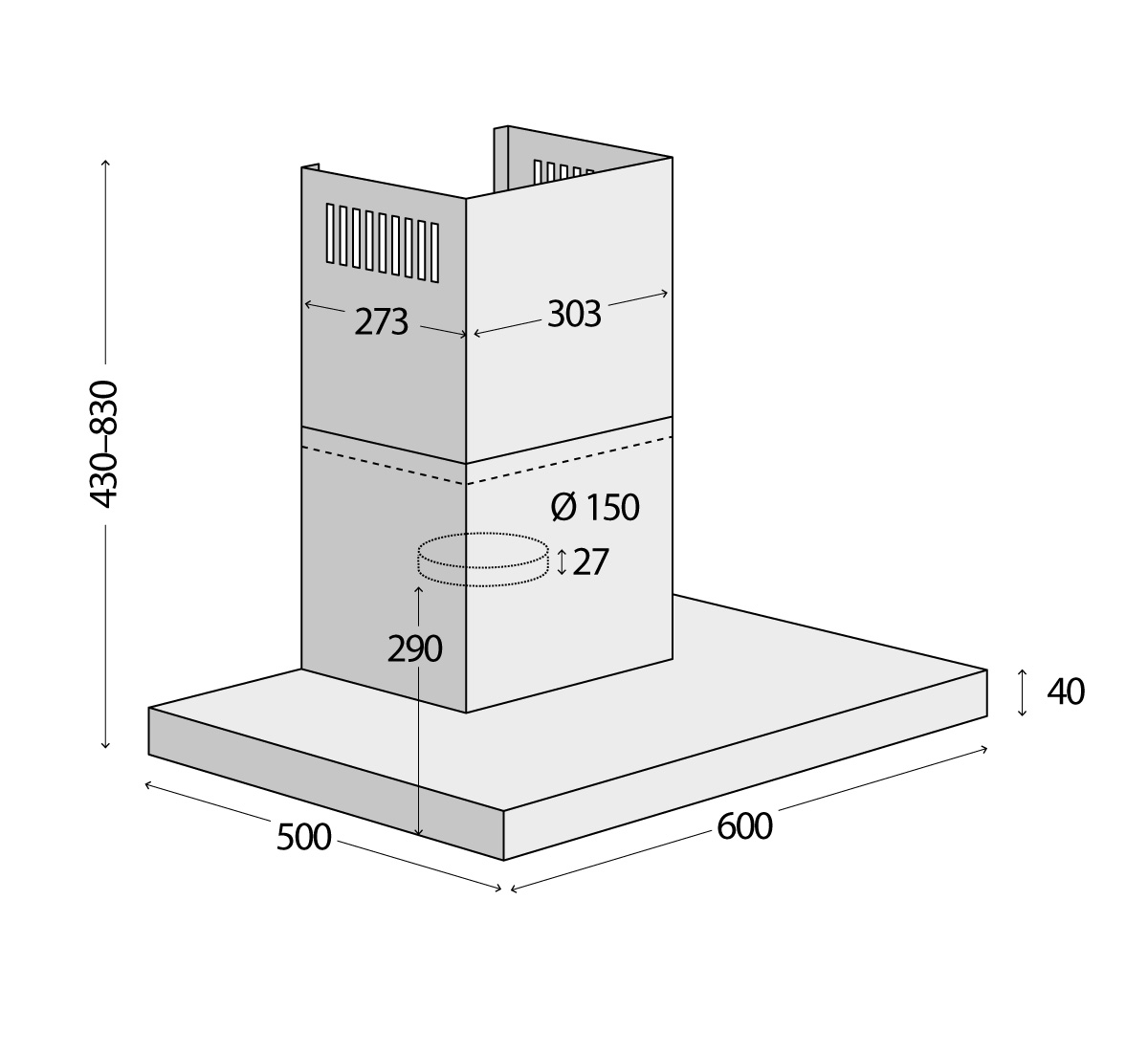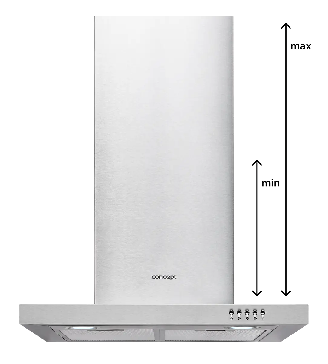 Výška odsávača je variabilná a spravidla je udávaná v minimálnych a maximálnych hodnotách. V balení sú k dispozícii dve časti "komína", ktoré do seba "zapadajú". Vďaka tomu si môžete výšku prispôsobiť presne podľa svojich potrieb.