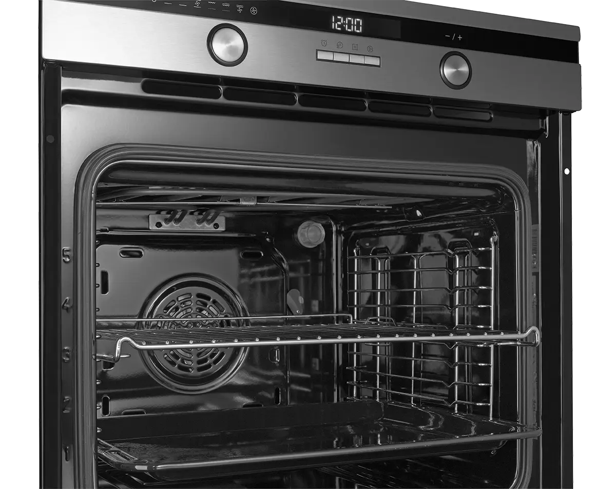 Vstavaná rúra ETV7360ss ponúka veľký vnútorný priestor s objemom 70 l, takže v nej pohodlne pripravíte i väčšie množstvo pokrmu naraz. Vo vnútri nájdete 5 zásuvných úrovní pre umiestnenie roštu a plechu.