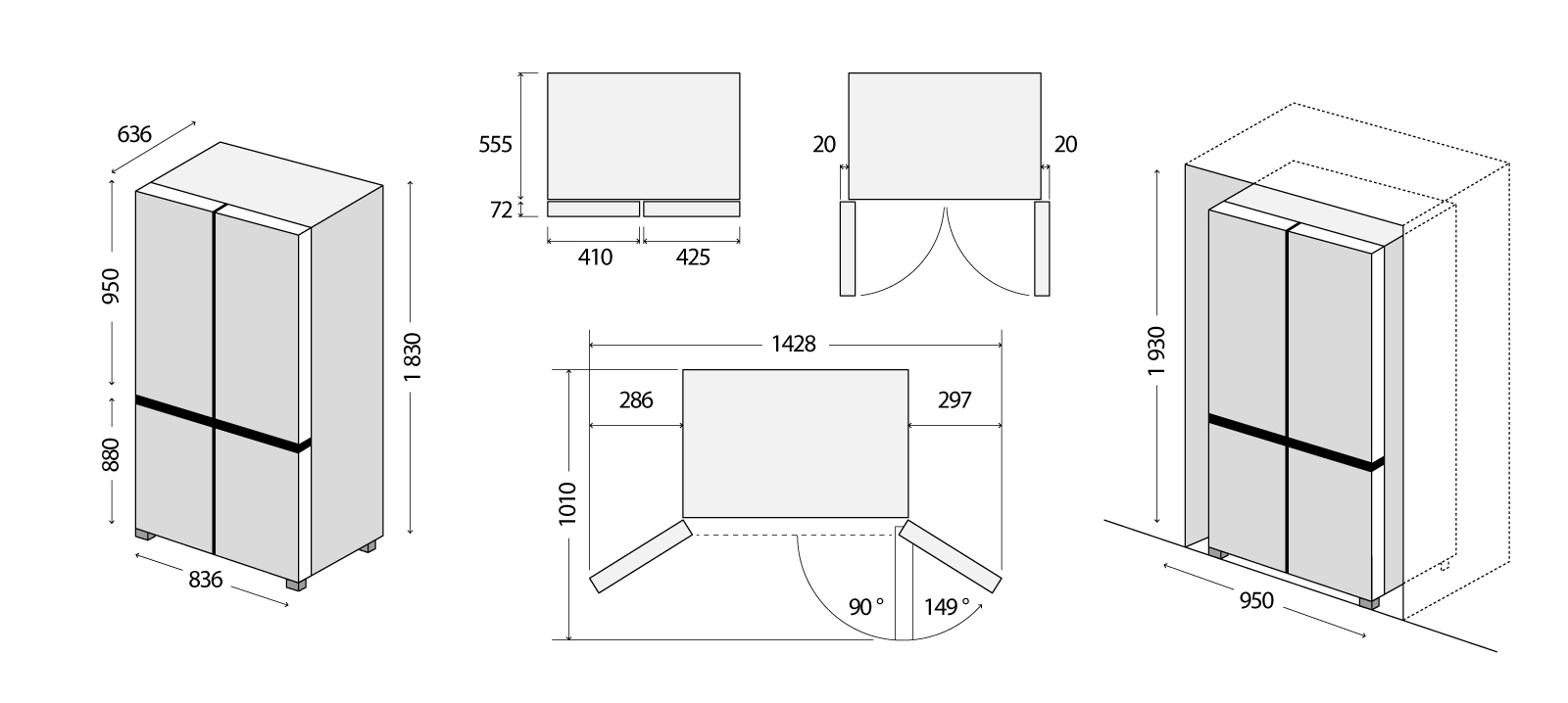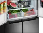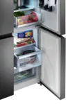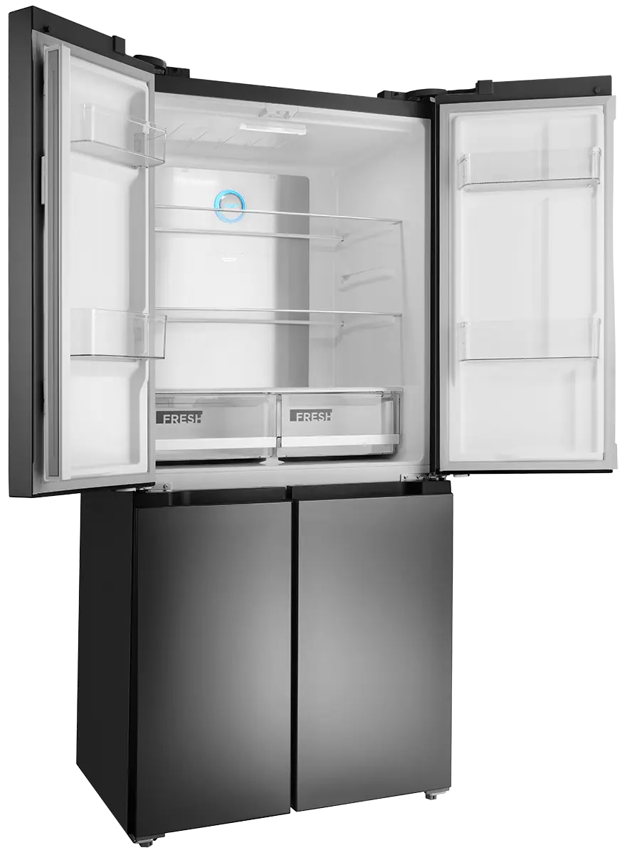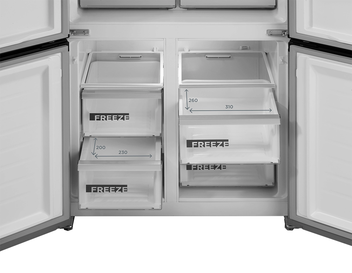 Chladnička disponuje praktickým otváraním dverí. Pre plnohodnotné vysunutie zásuviek stačí dvere chladničky otvoriť len do pravého uhla. Chladničku teda môžete umiestniť i blízko steny, ale vždy je nutné počítať s ľahkým nábehom dverí min. 20 mm.