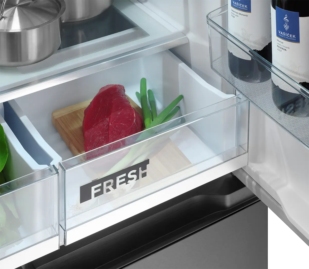 Fresh zóna je priestor v spodnej časti chladničky, ktorý sa vyznačuje nižšou teplotou a optimálnou vlhkosťou, ktorá je riadená vlhkostným ochranným filmom a špeciálnym tesnením. Vďaka tomu dochádza až k 2 násobnému predĺženiu skladovacej doby a až 3 násobnému predĺženiu čerstvosti uložených potravín.