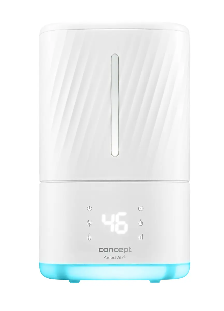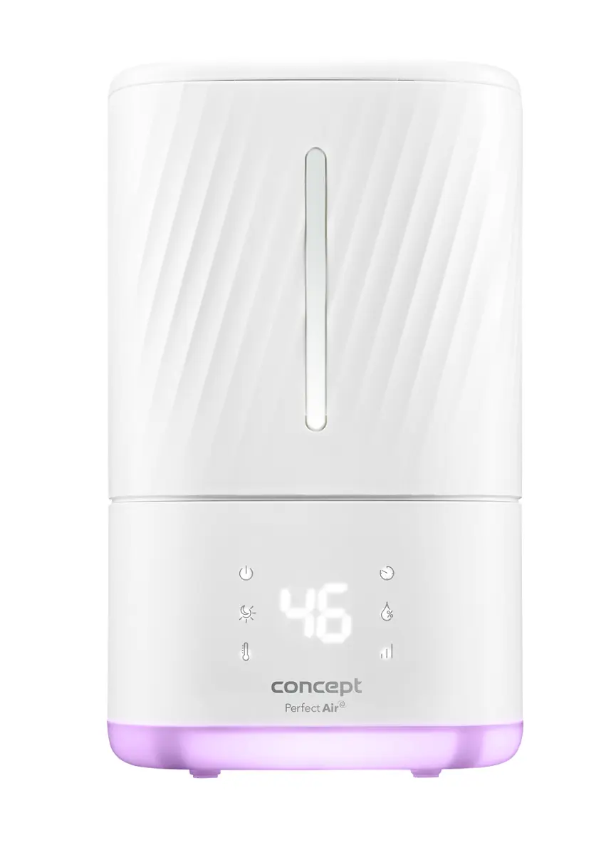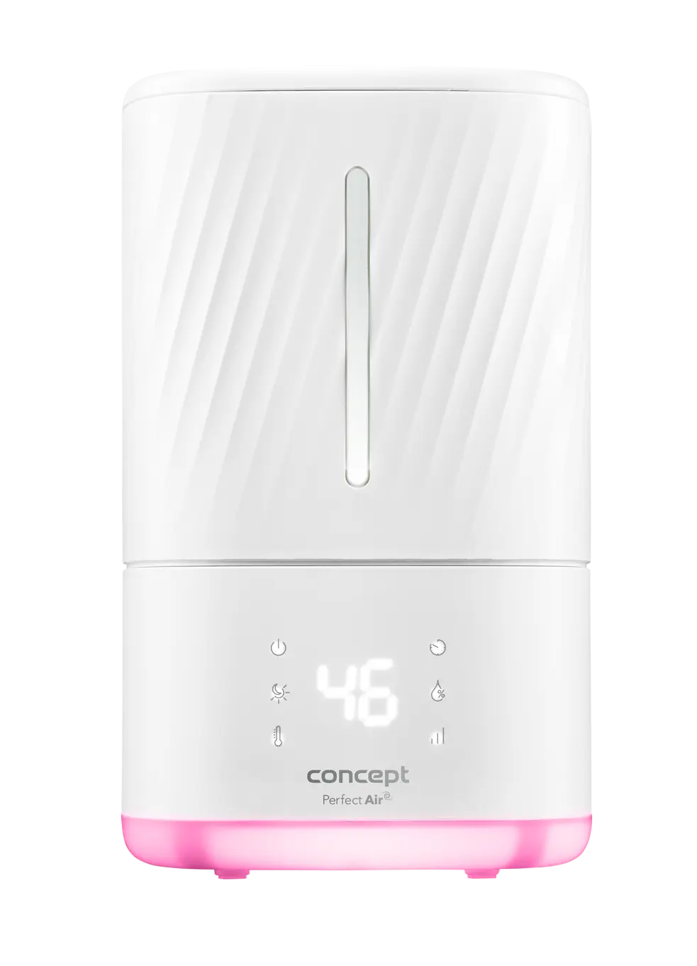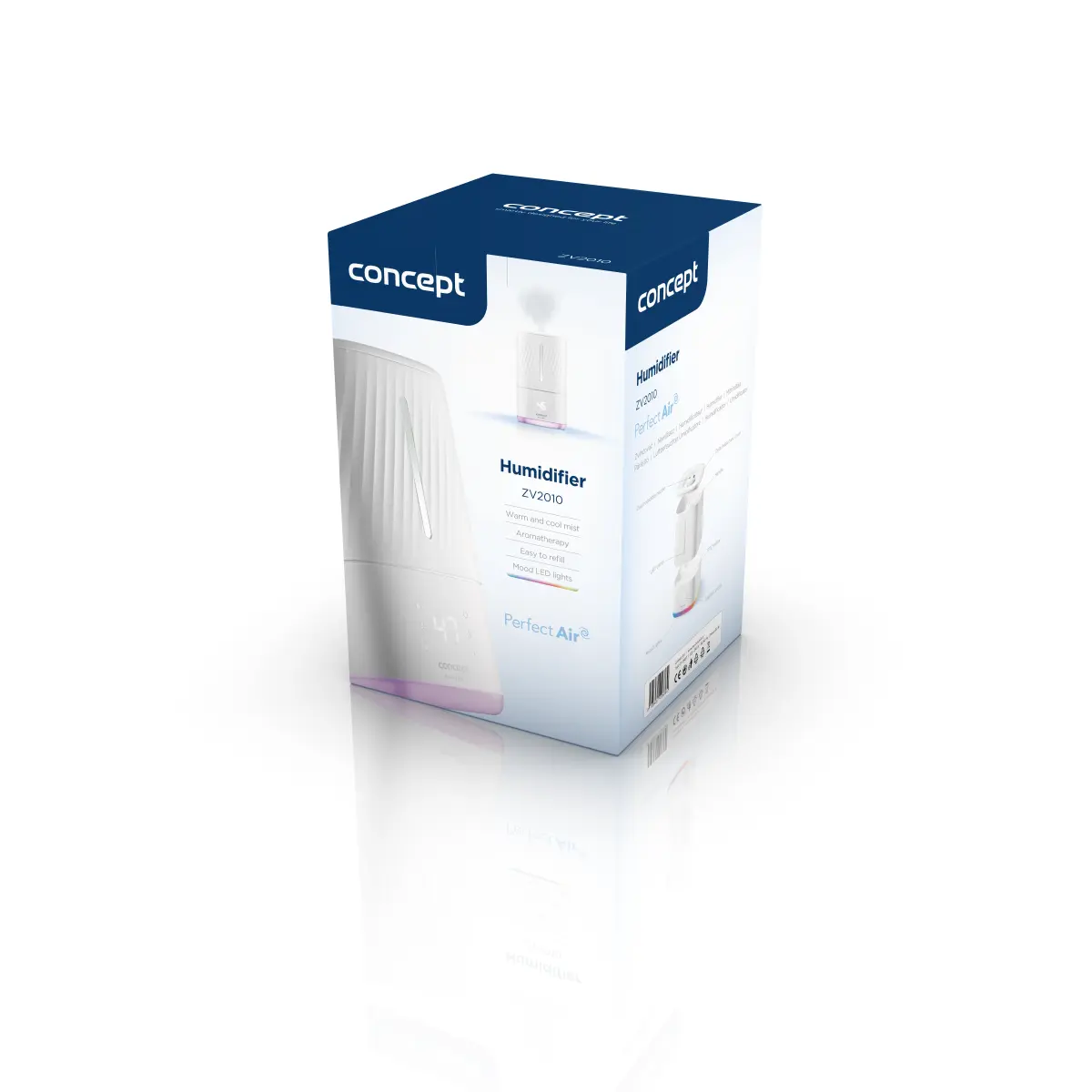 Zvlhčovač vzduchu ZV2010 z rady Perfect Air je spojením zvlhčovača a aroma difuzéra. V kombinácii s účinným filtrom, ktorý zachytí baktérie a minerály obsiahnuté vo vode, vám pomôže v domácnosti nastaviť ideálne prostredie pre vaše zdravé dýchanie. Moderný design podčiarkne aj farebné ambientné podsvietenie, ktoré ponúka širokú škálu farieb. Môžete si zafixovať jednu, alebo ponechať všetky, aby sa postupne menili.