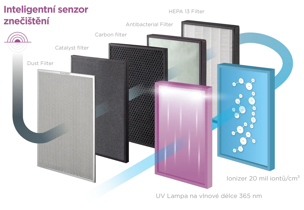 Katalytický filter - rozkladá čpavok, benzén a ďalšie nebezpečné látky uvoľňujúce sa napr. z nového nábytku a kobercov.