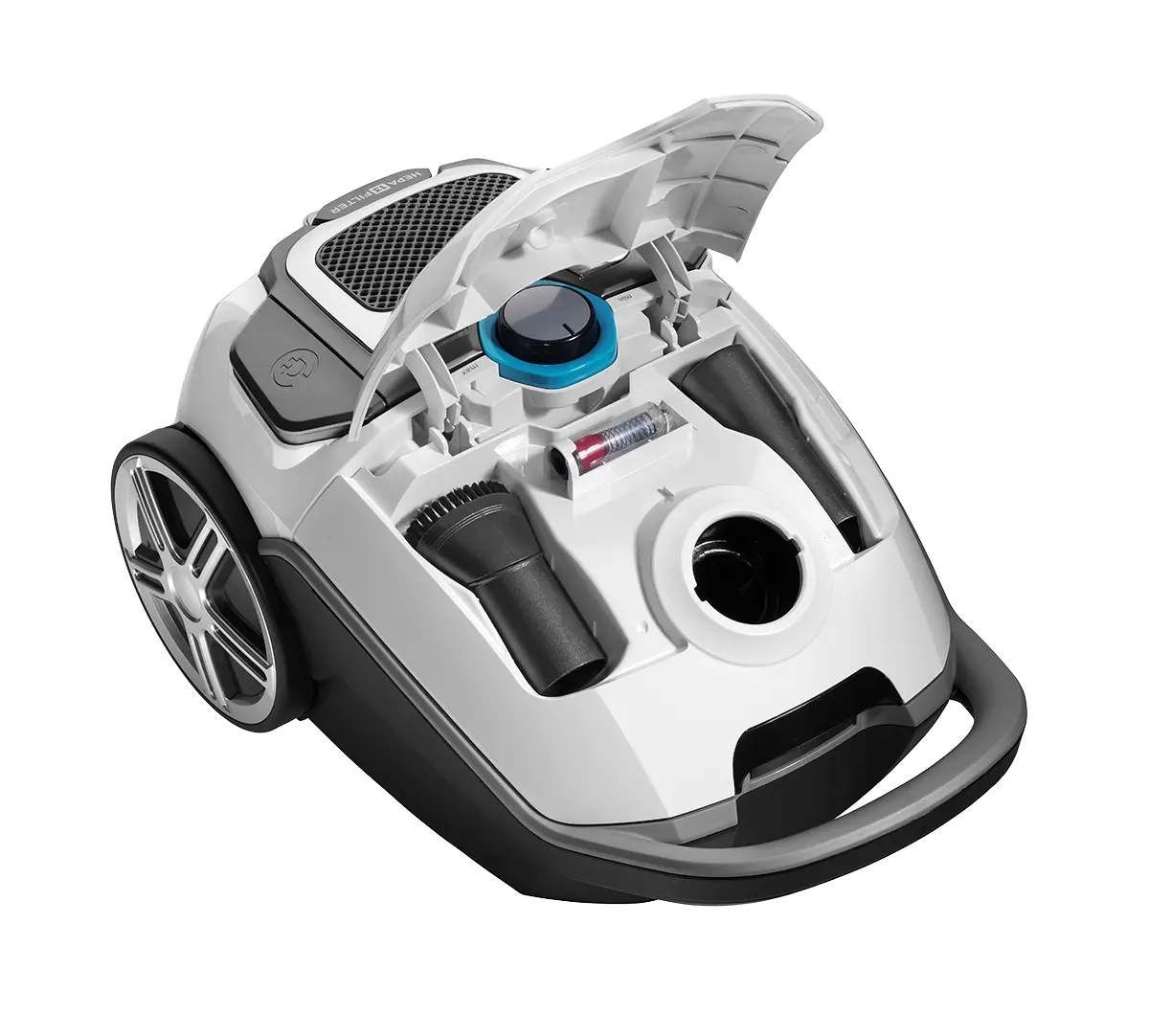 Vďaka akčnému rádiusu až 11 m nebudete mať problém dostať sa na akékoľvek miesto. Vrecko s objemom 3 l je vyrobené z modernej SMS textílie, ktorá má oproti klasickým papierovým vreckám radu nesporných výhod: má vysoké filtračné schopnosti, je ANTIBAKTERIÁLNE, nevadí mu zvýšená vlhkosť, a naviac šetrí motor. Vysávač je vhodný pre alergikov. Umývateľný HEPA filter 13 zachytí aj tie najjemnejšie častice ako je prach alebo peľ.
