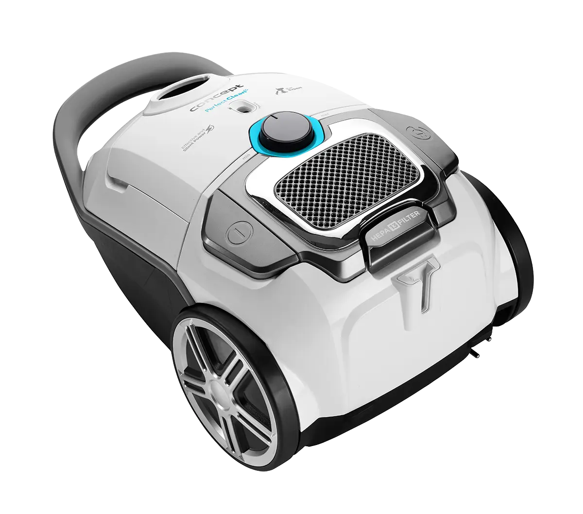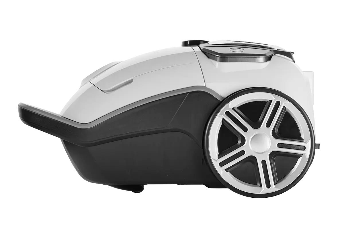 Telo vysávača a pojazdové kolieska sú osadené chrómovými prvkami, ktoré pôsobia veľmi esteticky. Vysávač je vybavený praktickým držadlom pre ľahké prenášanie a pogumovanou ergonomickou rukoväťou pre pohodlné upratanie.