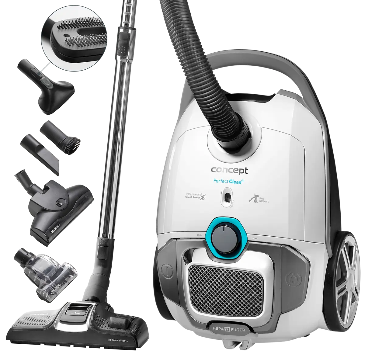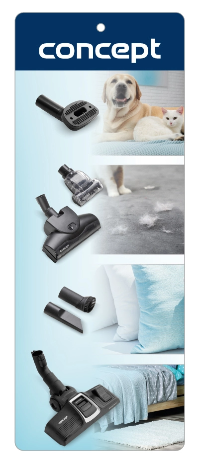 Vreckový vysávač Groovy Home 700 W Concept VP8338; Široké príslušenstvo; Akčný rádius 9 m; HEPA filter 13; EXTRA výkon; Vreckový vysávač Groovy Home VP8338 je osadený vysoko účinným ECO motorom s príkonom 700 W, ktorý má zásluhu na vynikajúcom sacom vý...