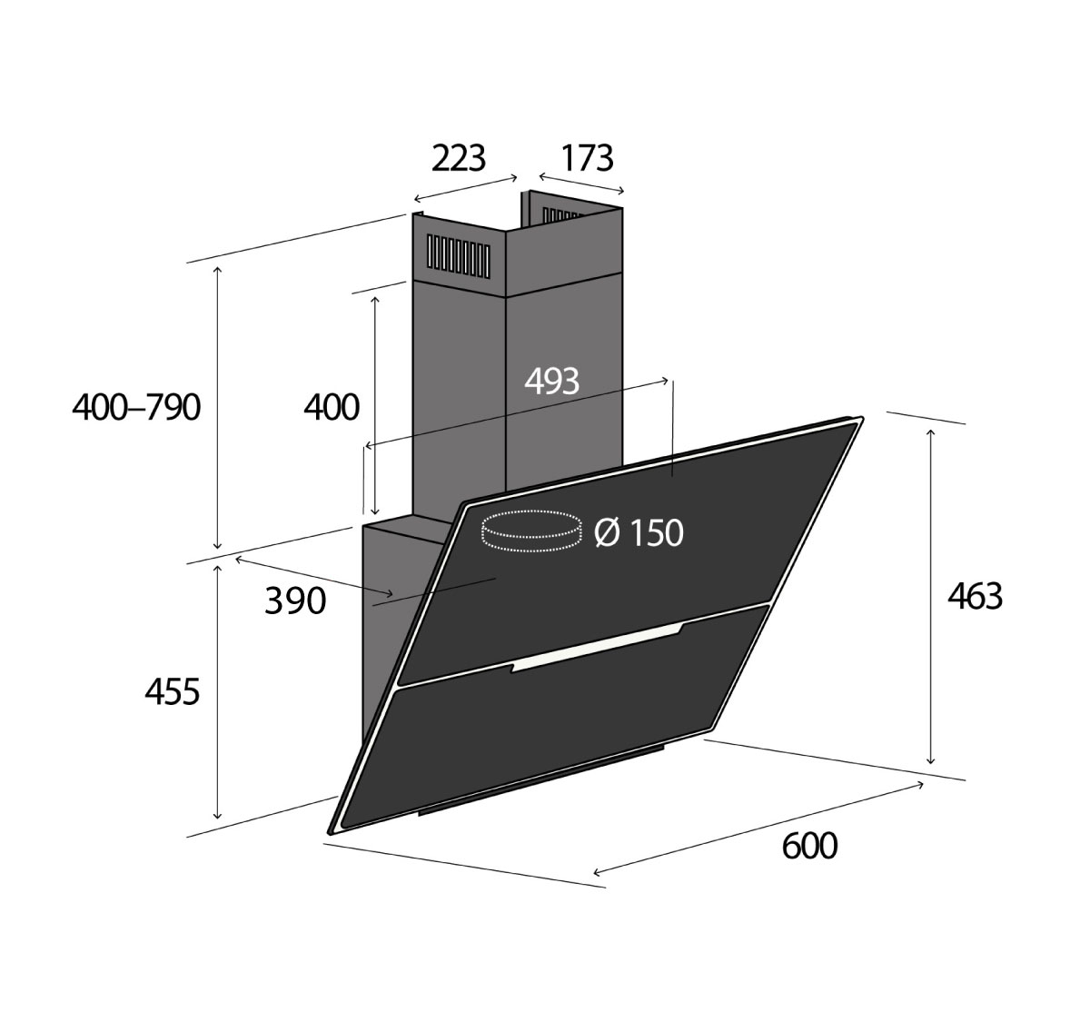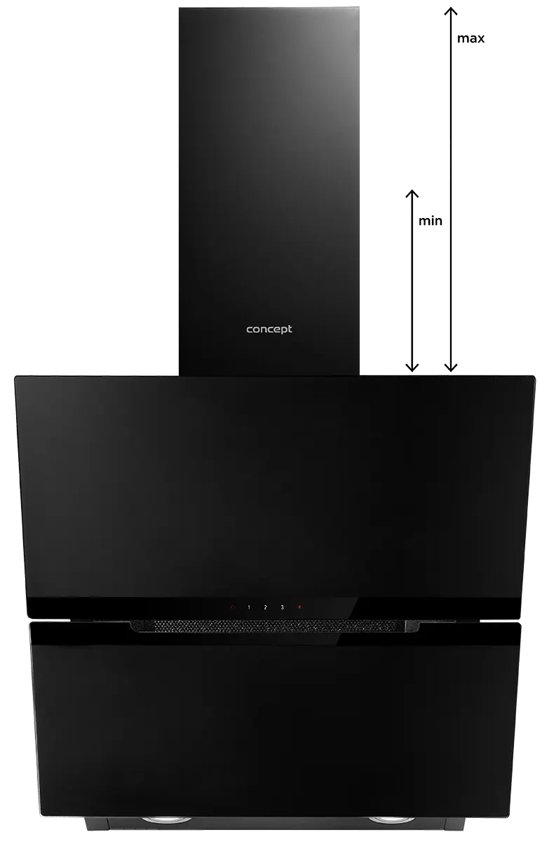 Výška odsávača je spravidla udávaná v minimálnych a maximálnych hodnotách. V balení sú k dispozícii dva komíny, ktoré do seba zapadajú, takže si výšku môžete nastaviť presne podľa svojich potrieb.