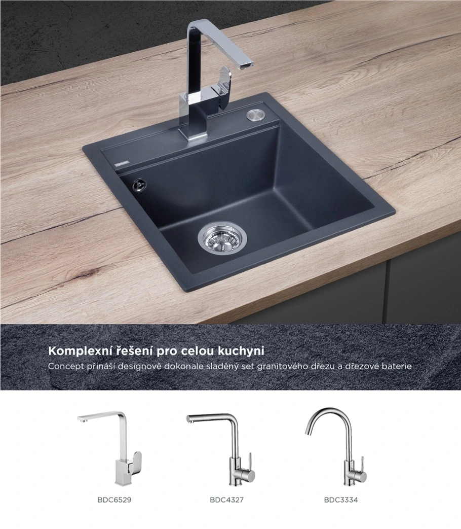 Atraktívny vzhľad, kvalitné spracovanie, vysoká odolnosť a ľahká údržba, to sú hlavné predností granitových drezov Concept. Perfektne zapadnú do každej kuchyne a v kombinácii s batériami Concept tvorí dokonale zladený celok. Model DG00C50dg je súčasťou designovej rady CUBIS, ktorú spájajú moderné hranaté línie a v kuchyni pôsobí veľmi nadčasovým a elegantným dojmem.