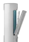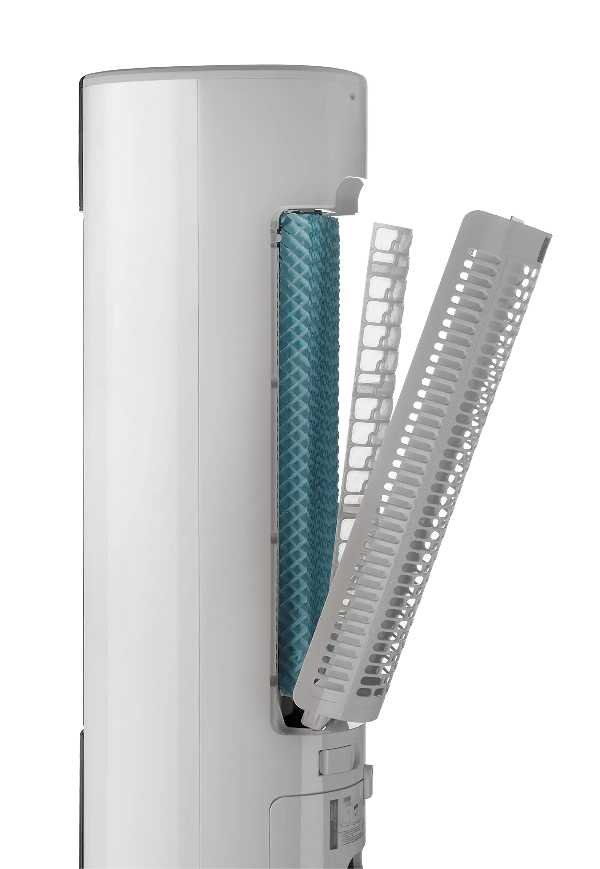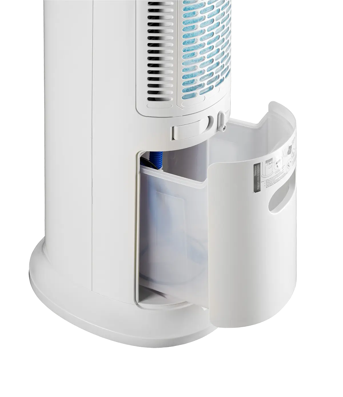 Prístroj prefukuje vzduch cez vodné filtre, a tým dochádza k jeho ochladeniu. K prevádzke tak stačí naplniť nádržku vodou, a pokiaľ chcete vzduch ešte viac ochladiť, pridáte k vode chladiace náplne, ktoré sú súčasťou balenia. Zásobník s ukazovateľom vodnej hladiny má objem 7 l. Pokiaľ ho vyberiete alebo bude prázdny, prístroj sa automaticky vypne.