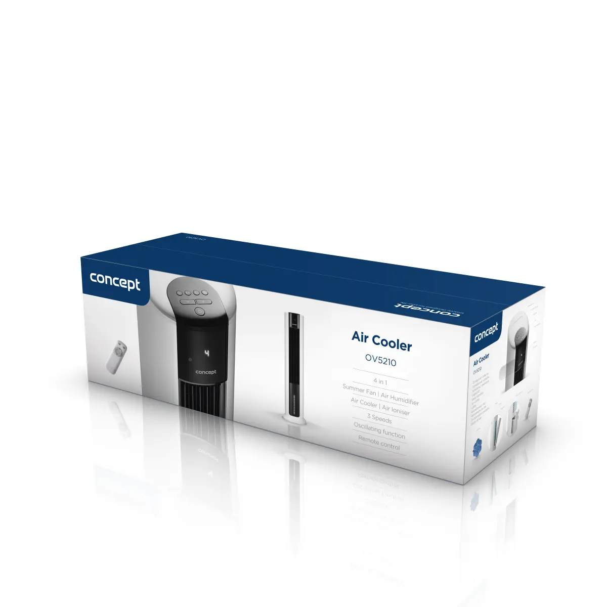 Ochladzovač vzduchu OV5210 budete v rozpálených letných dňoch doslova milovať. Zastane práci hneď tri prístroje: ochladzovača, ventilátora a zvlhčovača. Funkcia ochladzovania privedie do miestnosti prúd studeného vzduchu a ventilátor za chvíľu premení horúci vzduch na svieži vánok. Vďaka zvlhčovaču, ktorý funguje na princípe odparovania vody, je ochladený vzduch zároveň aj zvlhčený, čo je oveľa zdravšie ako suchý vzduch z bežnej klimatizácie.