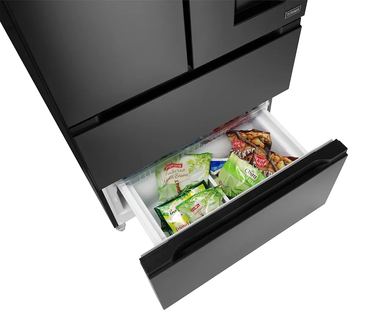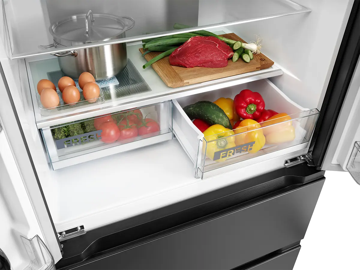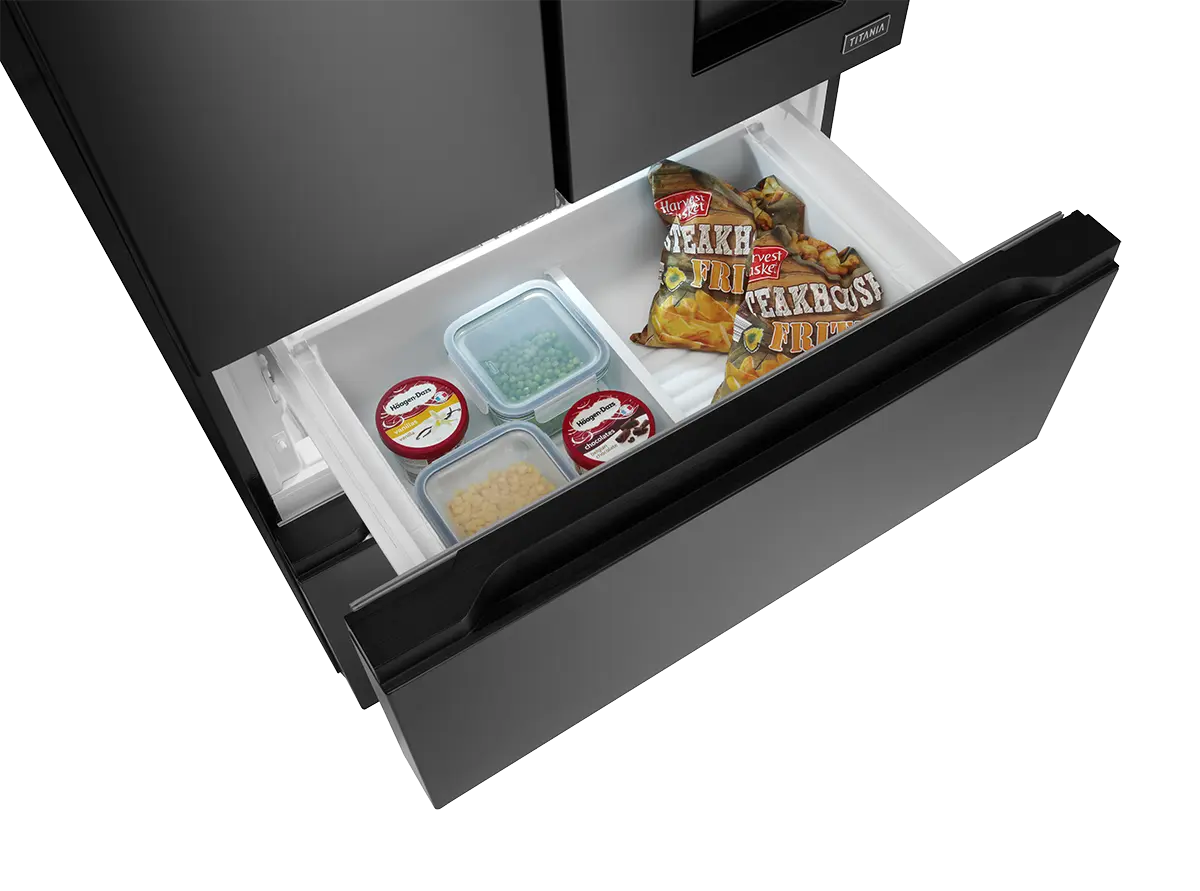 Obe zásuvky mrazničky sú vybavené integrovanými šuplíkmi pre ukladanie drobných potravín. Celý priestor je tak lepšie rozčlenený pre vaše prehľadnejšie skladovanie. Výhodou vnútorných priehradok je, že sú opatrené samostatnými pojazdami. Pokiaľ potrebujete manipulovať v priestore hlavného boxu, vnútornú priehradku jednoducho zasuniete, takže vám pri práci nijak neprekáža.