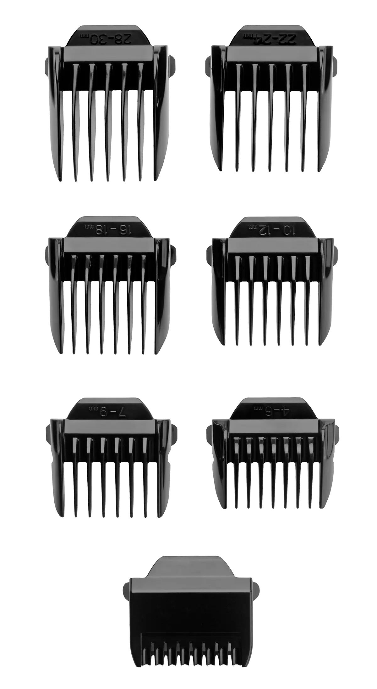 Zastrihávač ZA7030 je vybavený 6 ľahko vymeniteľnými hrebeňovými nástavcami pre rôznu dĺžku strihu od 4 do 30 mm. Nechýba ani špeciálny nástavec na prestrihávanie, ktorý dodá vášmu účesu ľahkosť, bez toho aby skrátil ich dĺžku. Bez použitia hrebeňového nástavca docielite dĺžku od 0,8 do 2,8 mm a získate perfektne zastrihnuté fúzy s dokonalými líniami.