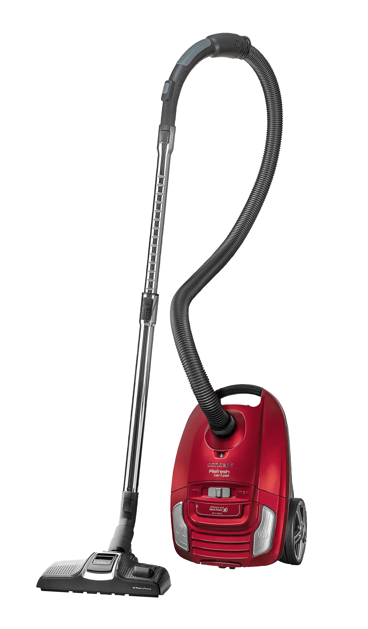 Elegantný design vysávača je podčiarknutý chrómovými prvkami, ktoré pôsobia veľmi esteticky. Vďaka prednému, plne otočnému koliesku sa vysávač hladko prispôsobí každému vášmu pohybu. Pogumované zadné kolesá sú šetrné k povrchu, takže nemusíte mať strach z poškriabania. Je vybavený praktickou rukoväťou pre jednoduché prenášanie a ponúka 2 parkovacie polohy a 2 možnosti ukotvenia podlahovej hubice.