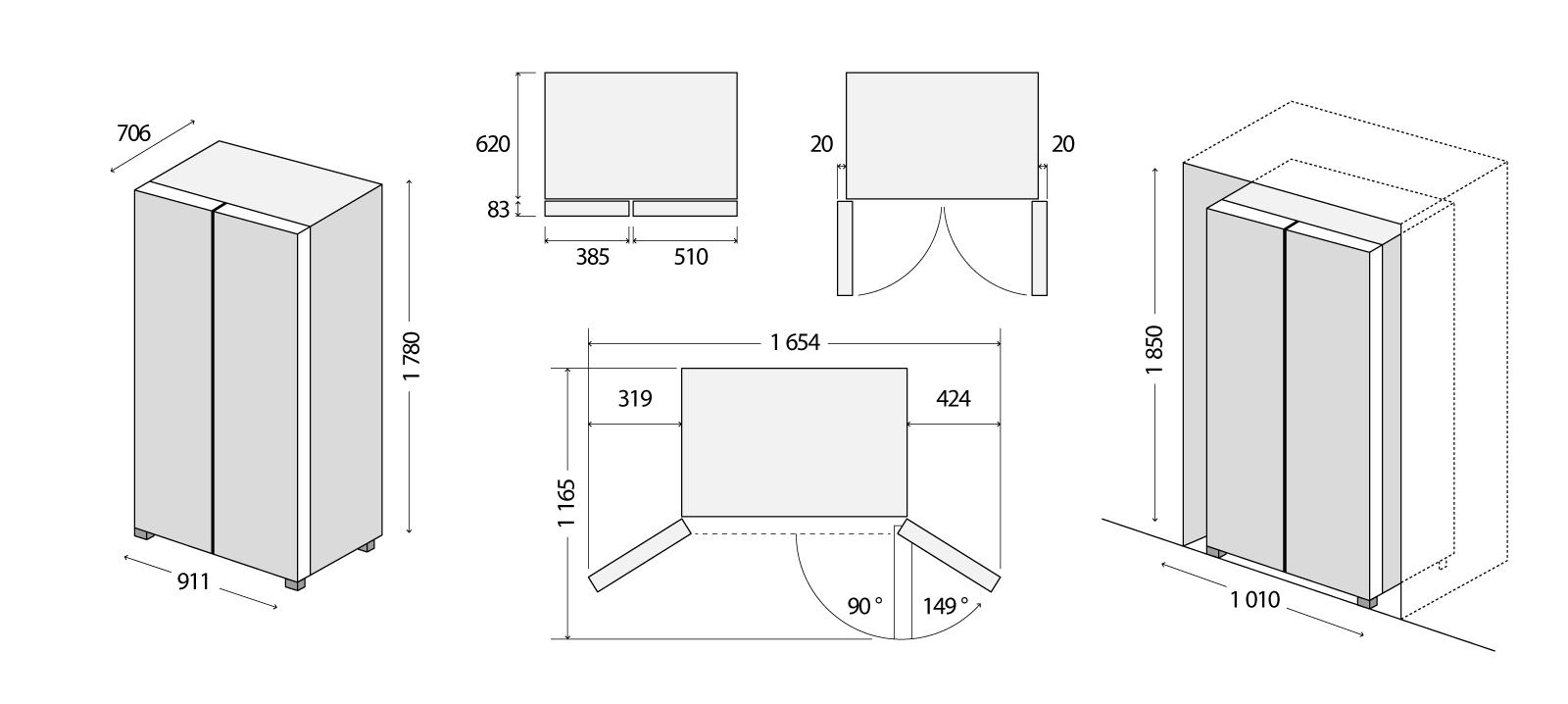 Chladnička disponuje praktickým otváraním dverí. Pre plnohodnotné vysunutie zásuviek stačí dvere chladničky otvoriť len do pravého uhla. Chladničku teda môžete umiestniť i blízko steny, ale vždy je nutné počítať s ľahkým nábehom dverí min. 20 mm.