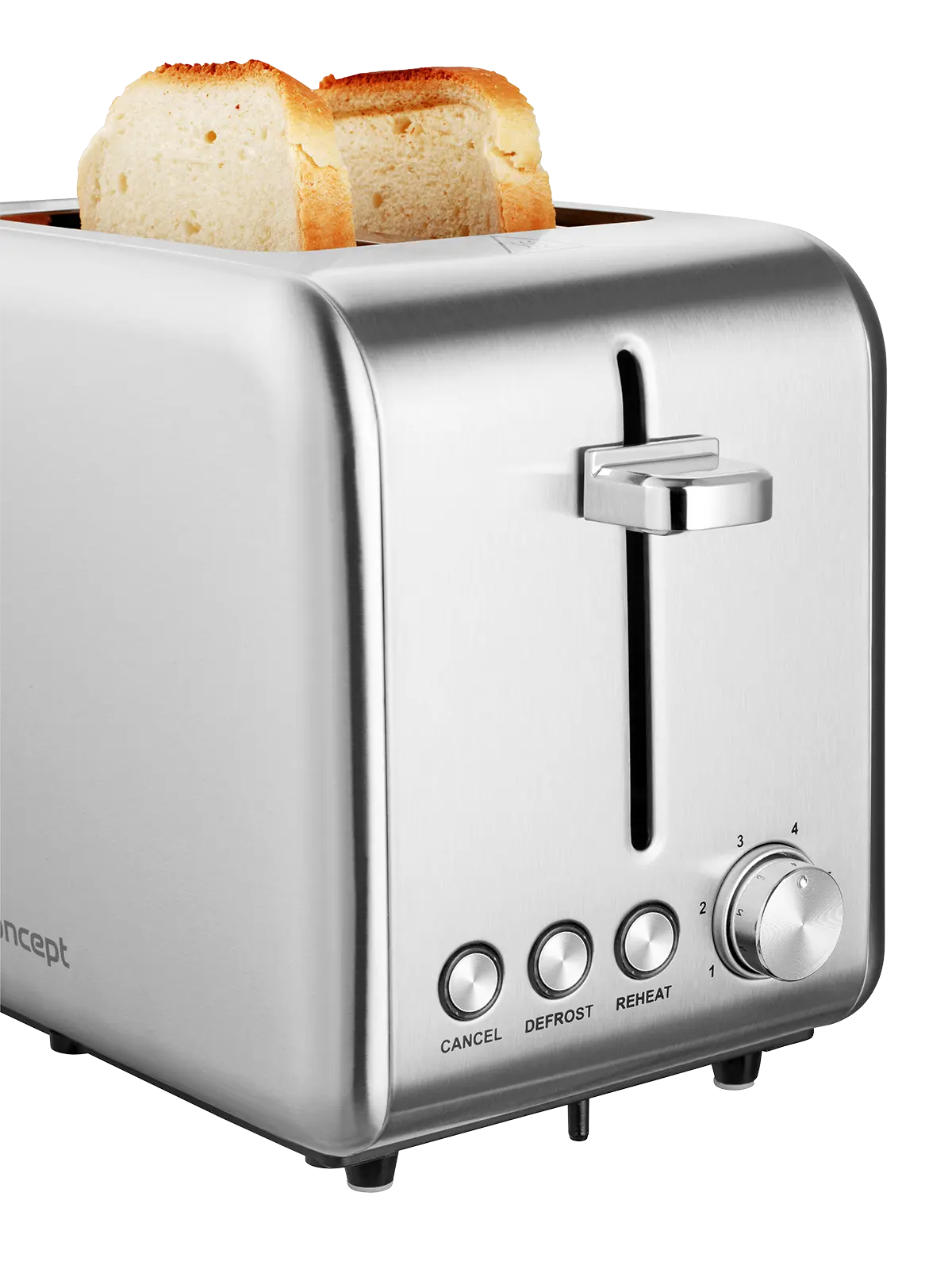 S hriankovačom Concept TE2050 pripravíte za chvíľu výborné domáce hrianky a chrumkavé toasty bez použitia oleja. Disponuje dvoma opekacími otvormi a elektronickým časovačom so 6 stupňami opekania. Vyniká extra širokým slotom, takže nebudete obmedzení hrúbkou vkladaných plátkov. Ponúka funkcie rozmrazovania, opakovaný ohrev a okamžité ukončenie ohrevu. Po skončení nastavenej doby opekania sa hotové pečivo automaticky vysunie a prístroj sa vypne. Doprajte si chrumkavú pochúťku kedykoľvek máte chuť.