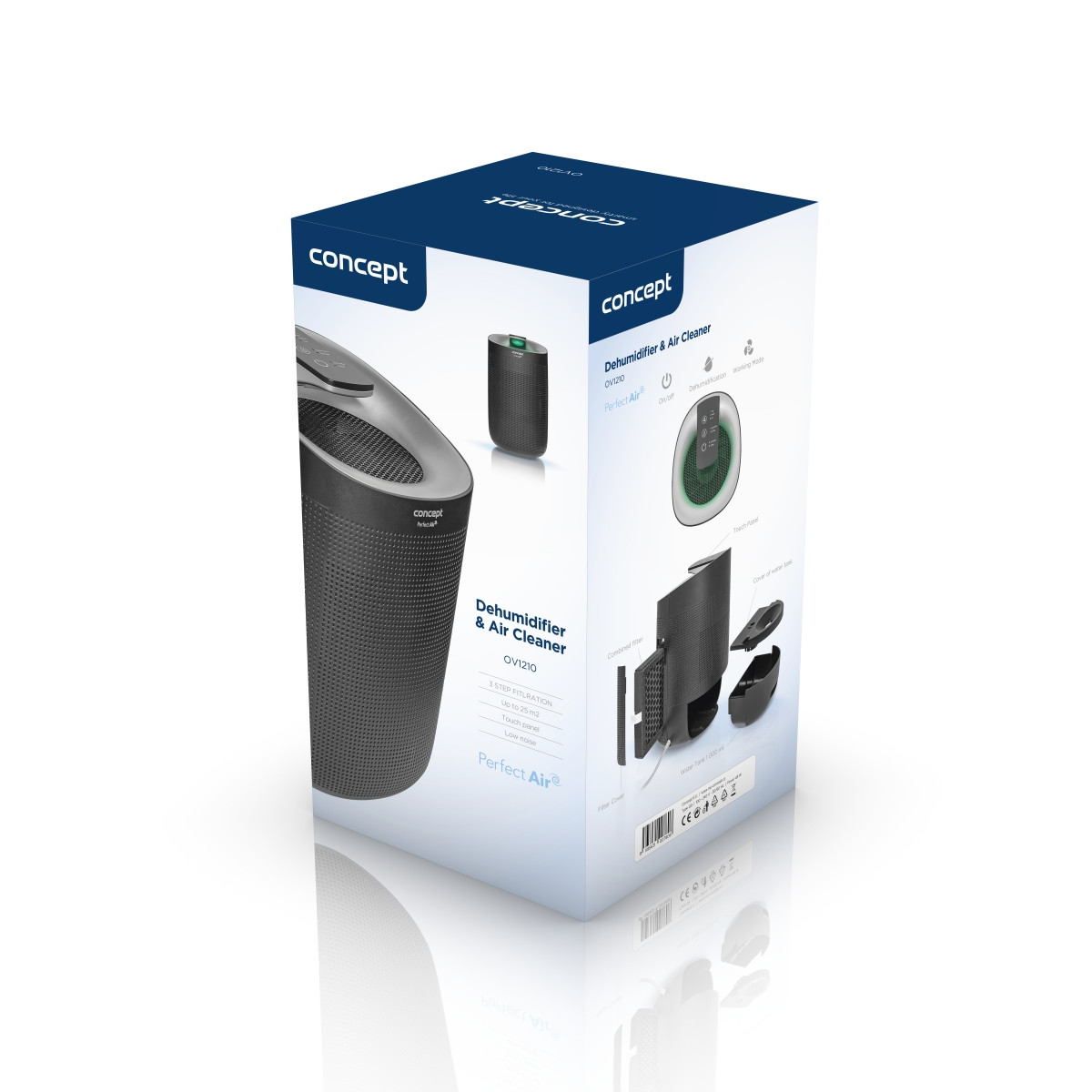 Odvlhčovač a čistička vzduchu Concept OV1200 PERFECT AIR; Čistenie vzduchu; Design; Tichá prevádzka; Zbaví vás vírusov a baktérií; Chcete sa doma cítiť naozaj bezpečne? OV1200 je ďalší z rady pomocníkov, ktorí vám dopomôžu k čistejšiemu a zdravšiemu ov...