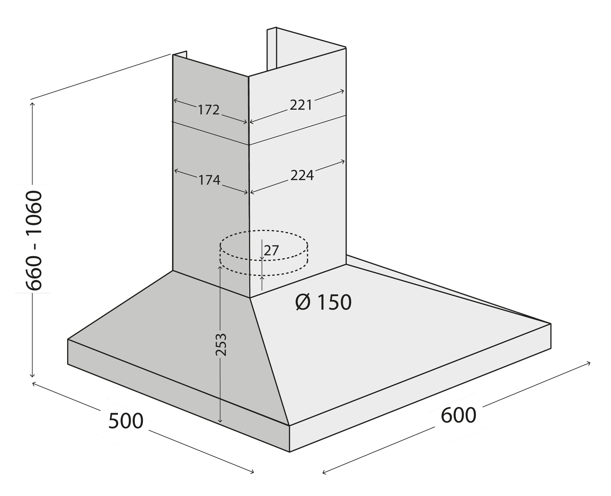 Výška odsávača je spravidla udávaná v minimálnych a maximálnych hodnotách. Ľubovoľne si môžete prispôsobiť výšku odsávača. V balení sú k dispozícii dve časti "komína", ktoré do seba "zapadajú". Vy si môžete túto výšku nastaviť presne podľa svojich predstáv.