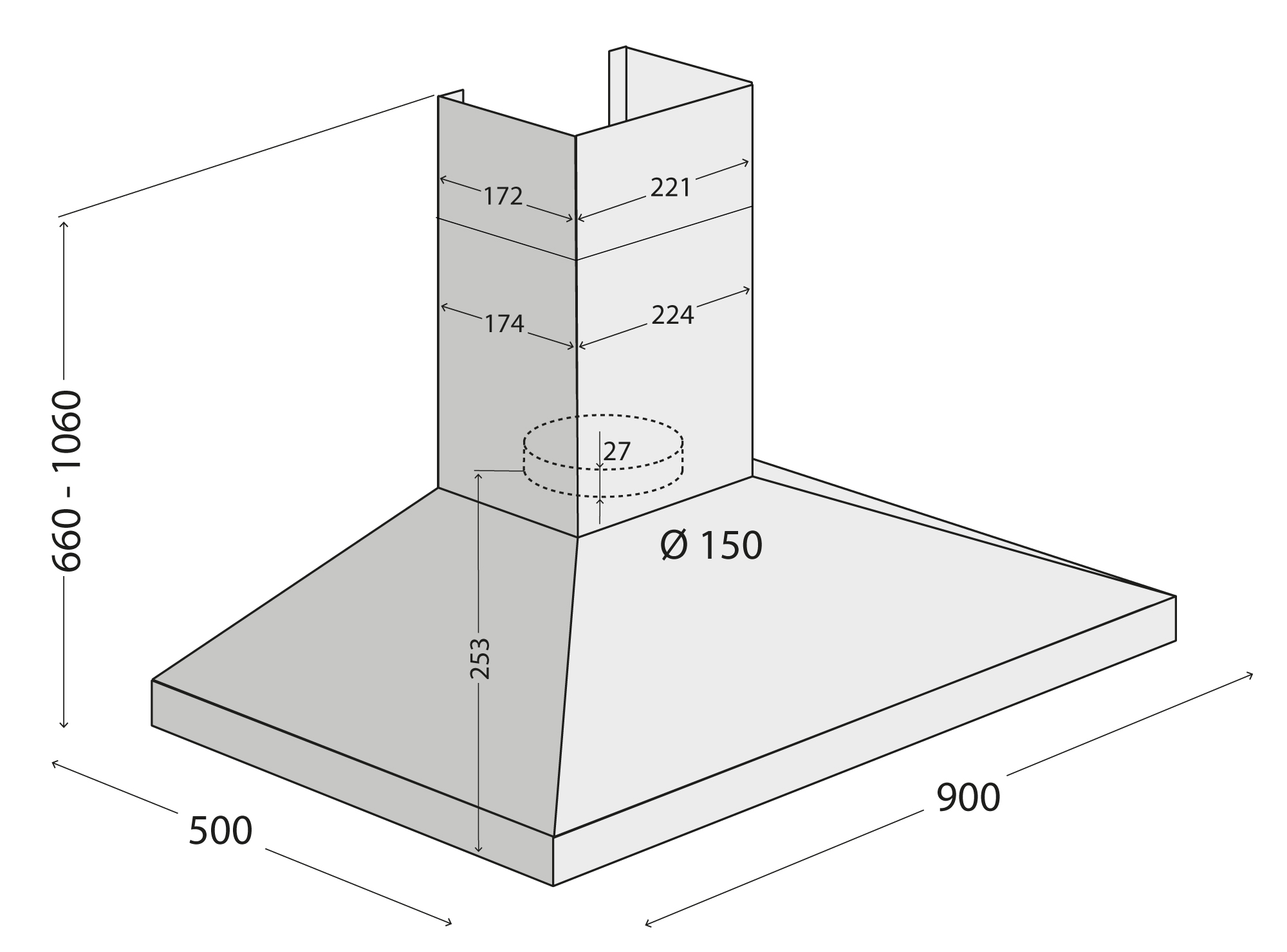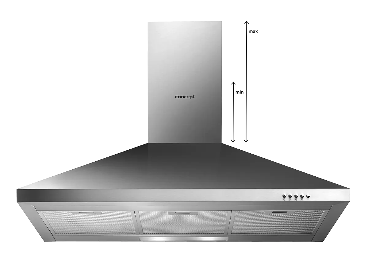 Výška odsávača je spravidla udávaná v minimálnych a maximálnych hodnotách. Ľubovoľne si môžete prispôsobiť výšku odsávača. V balení sú k dispozícii dve časti komína, ktoré do seba zapadajú. Vy si môžete túto výšku nastaviť presne podľa svojich predstáv.