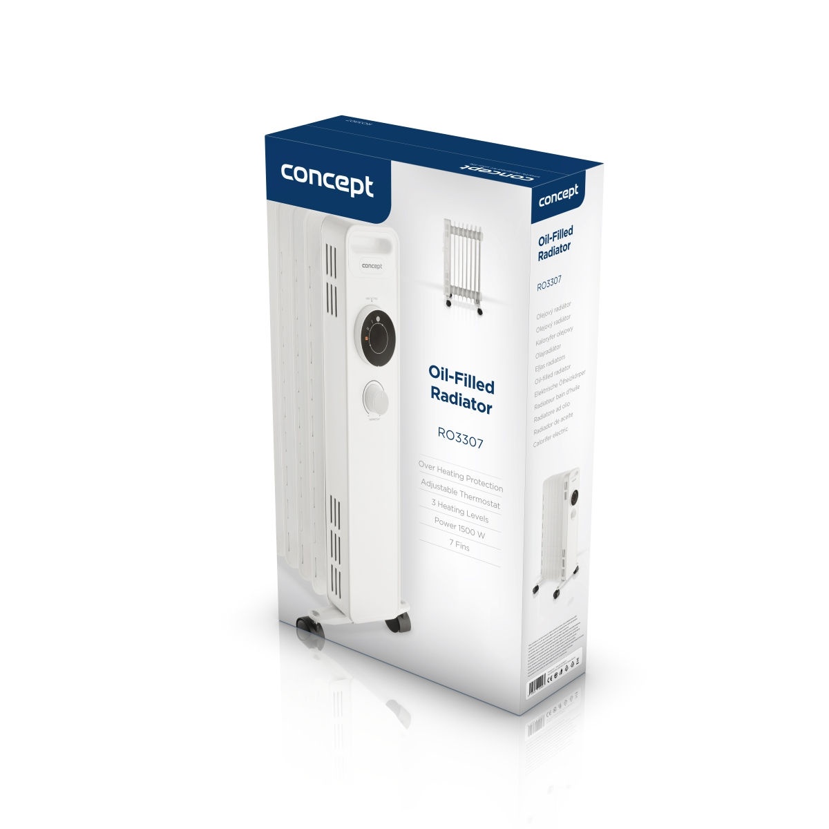 Olejový radiátor Concept RO3307 so 7 vyhrievacími článkami a príkonom 1500 W je vhodný do akýchkoľvek priestorov, kde potrebujete rýchle prikúriť alebo kde nemáte k dispozícii bežné vykurovanie. Vďaka elegantnému minimalistickému designu nenaruší interiér miestnosti. Disponuje 3 stupňami nastavenia výkonu a tichou prevádzkou, takže ho môžete využiť aj v spálni, bez toho aby vás rušil počas spánku. Iste oceníte aj jeho bezúdržbovú prevádzku.