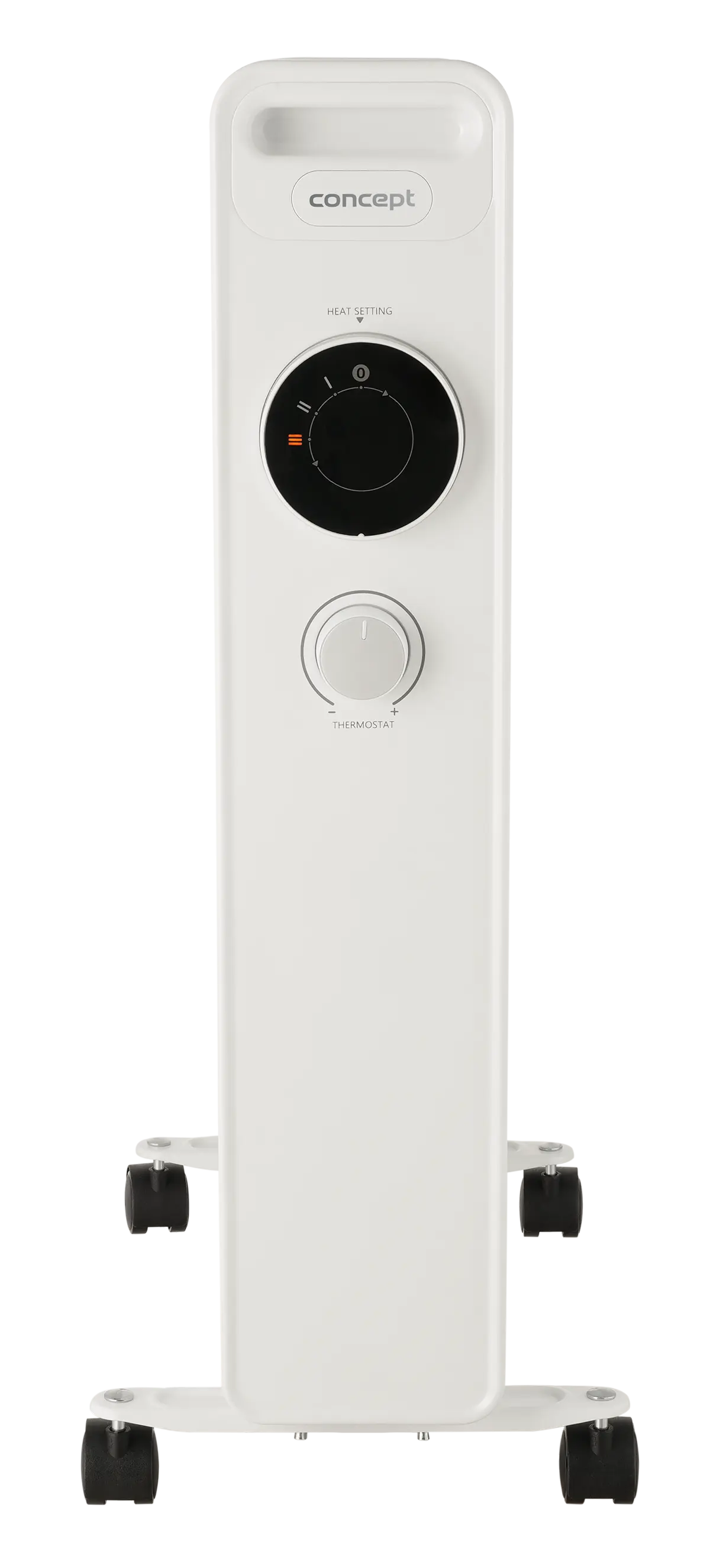 Olejový radiátor elektrický Concept RO3307; 7 vyhrievacích článkov; 3 stupne výkonu; Minimalistický design; Rýchle nahriatie a tichá prevádzka; Olejový radiátor Concept RO3307 so 7 vyhrievacími článkami a príkonom 1500 W je vhodný do akýchkoľvek priest...