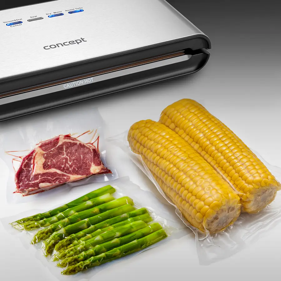 Vákuová zváračka fólií predlží životnosť vašich potravín. Zamedzí prístupu vzduchu, čím zabraňuje strate dôležitých látok obsiahnutých v potravinách a súčasne uchová ich čerstvú chuť a arómu. Týmto spôsobom skladovania potravín zároveň šetríte miesto vo vašej chladničke aj mrazničke. Vákuovanie môžete využiť tiež pri príprave sous-vide alebo pre urýchlenie marinovaní mäsa. Súčasťou balenia je 10 vreciek a praktický rezací nôž.