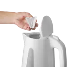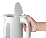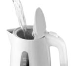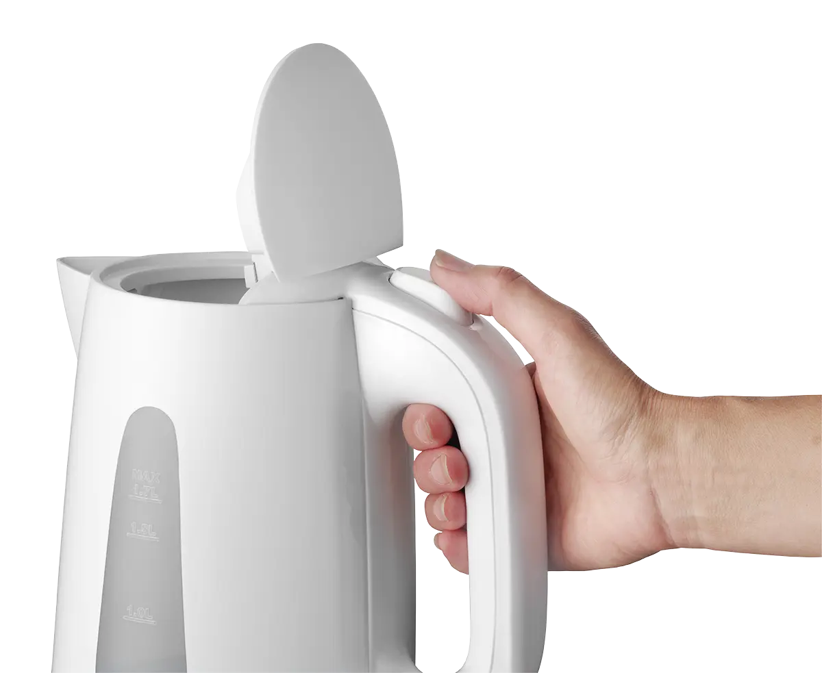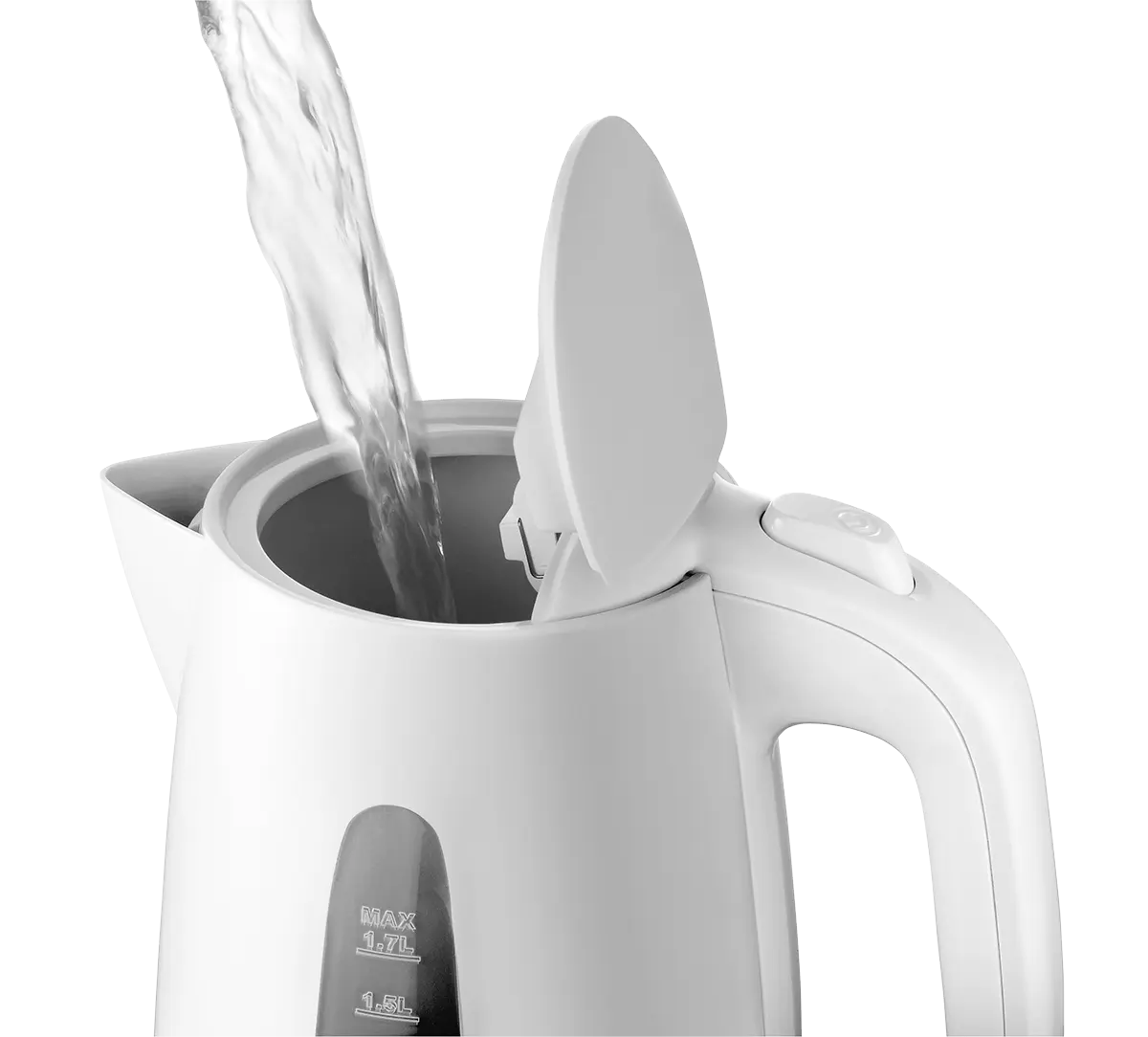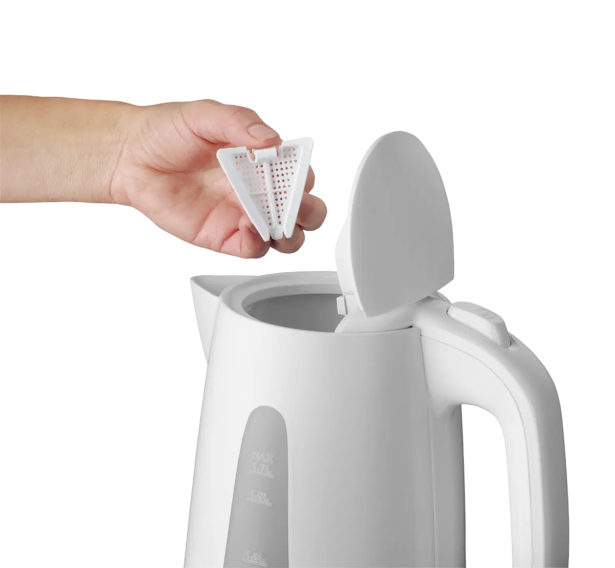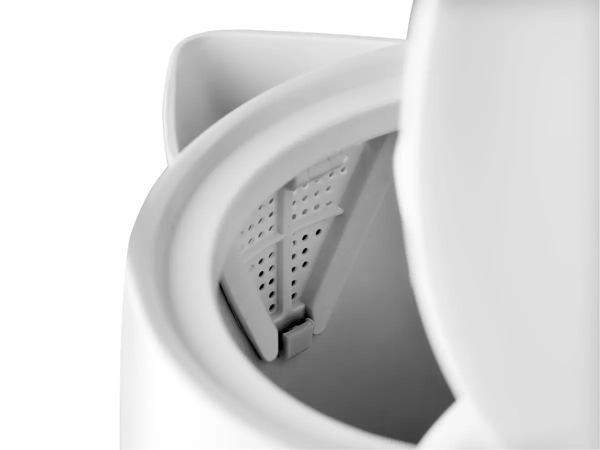 Kanvica je opatrená tlačidlom pre ľahké otváranie veka a veľkým plniacim otvorom pre pohodlné plnenie vodou. Hladké dno so skrytým vyhrievacím telesom zamedzuje usadzovaniu nečistôt. Filter proti vodným usadeninám je vyberateľný, takže ho môžete kedykoľvek podľa potreby vyčistiť. Praktický je aj plne otočný podstavec s priestorom pre uschovanie prebytočného kábla, na ktorý môžete kanvicu postaviť z akéhokoľvek uhla.