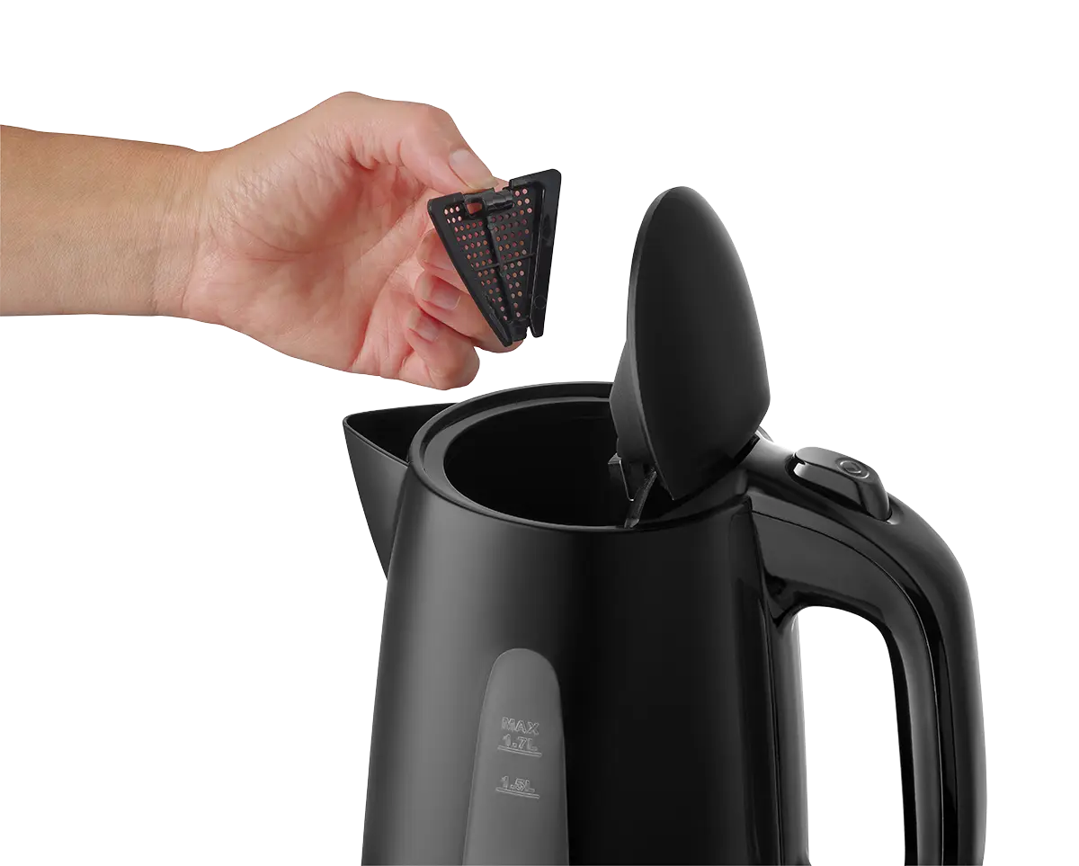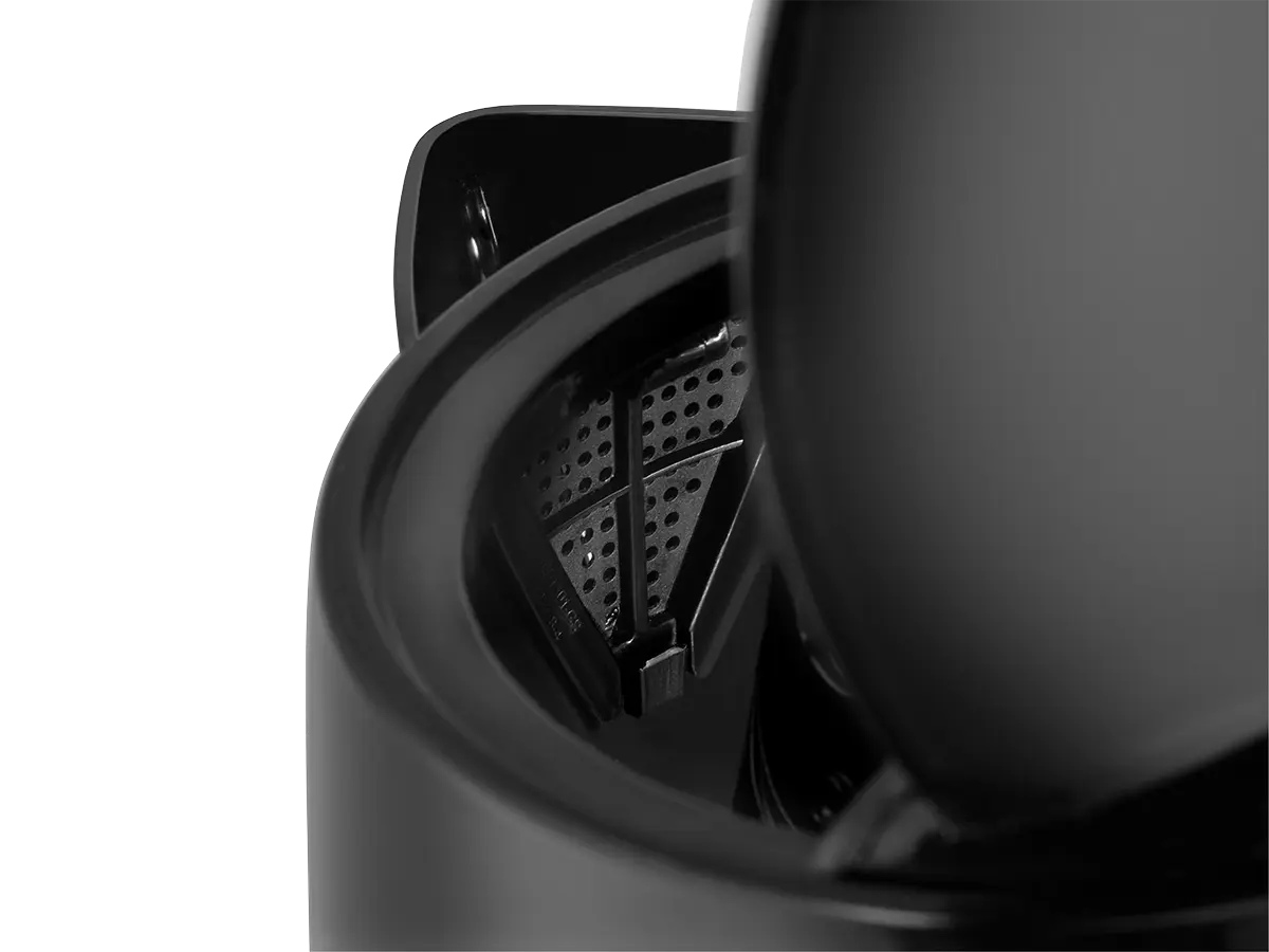 Kanvica je opatrená tlačidlom pre ľahké otváranie veka a veľkým plniacim otvorom pre pohodlné plnenie vodou. Hladké dno so skrytým vyhrievacím telesom zamedzuje usadzovaniu nečistôt. Filter proti vodným usadeninám je vyberateľný, takže ho môžete kedykoľvek podľa potreby vyčistiť. Praktický je aj plne otočný podstavec s priestorom pre uschovanie prebytočného kábla, na ktorý môžete kanvicu postaviť z akéhokoľvek uhla.