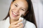Na vyčistenú tvár naneste váš obľúbený pleťový krém alebo sérum. Zapnite prístroj tak, aby svietila žltá kontrolka, a hlavicou smerujúcou dolu jemne prechádzajte po tvári. Vďaka prerušovaným vibráciám docielite účinné zapracovanie pleťových prípravkov, čím zvýšite ich účinnosť. Vaše pleť bude príjemne zjemnená, rozjasnená a krásne pružná.