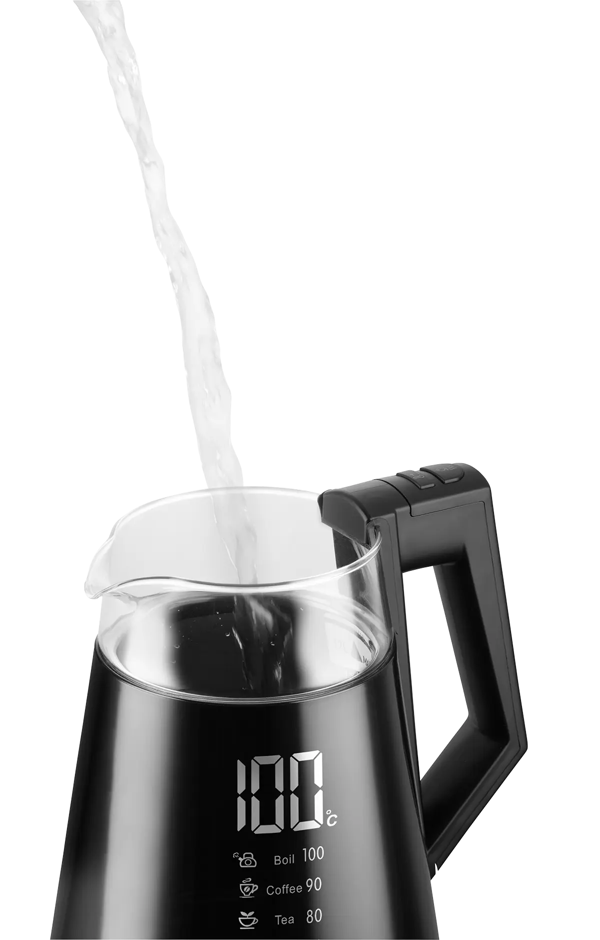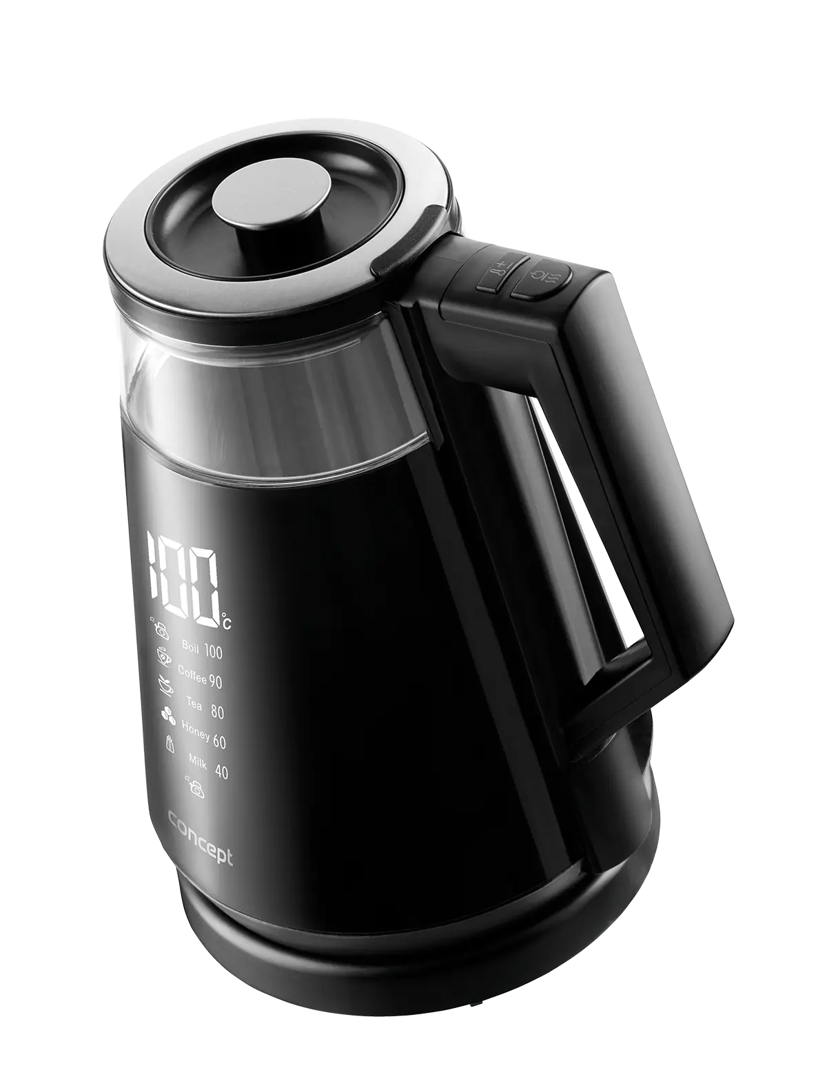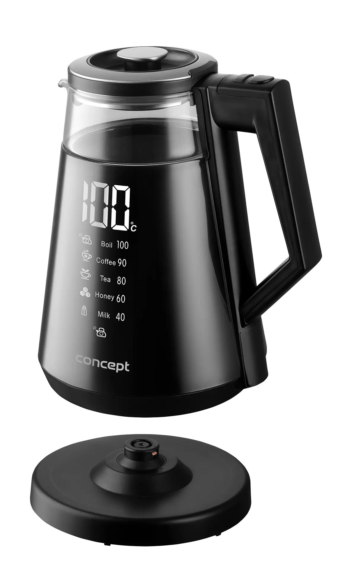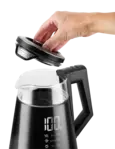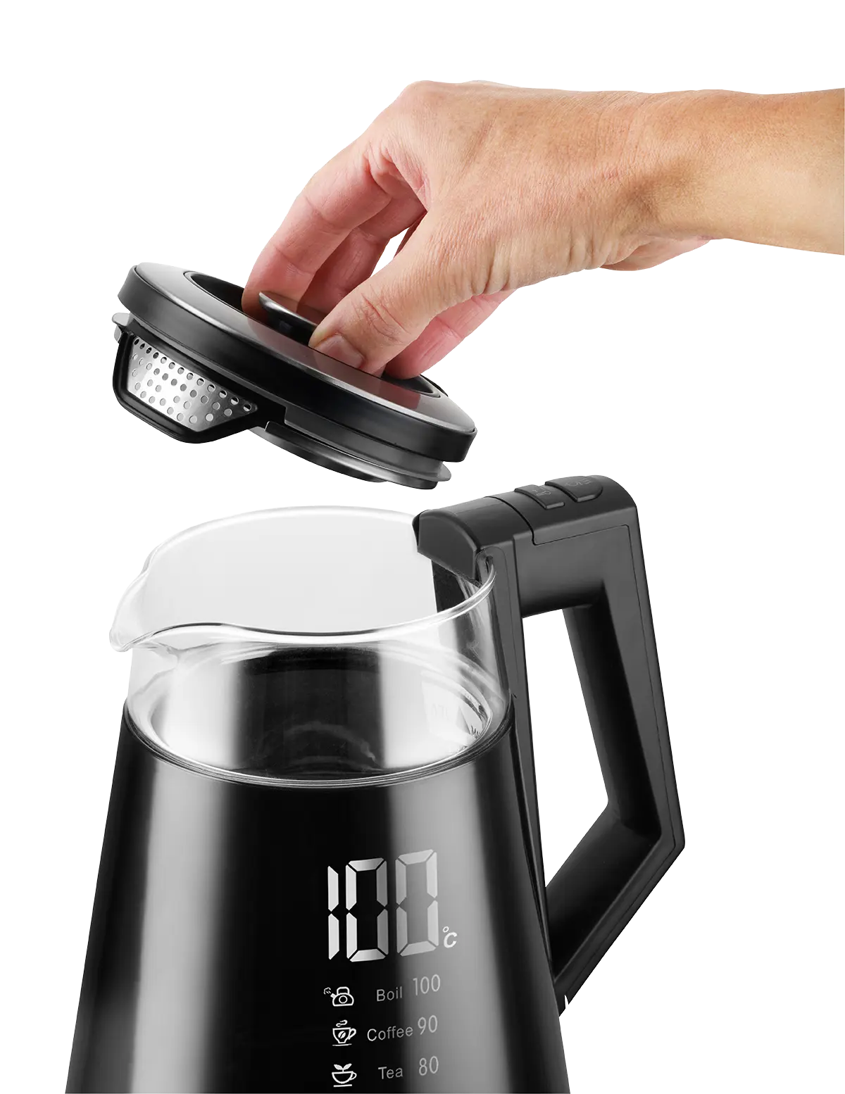 Rýchlovarná kanvica je vybavená digitálnym ovládaním s možnosťou nastavenia 7 stupňov teploty, takže v nej pripravíte všetko od detských príkrmov po najrôznejšie druhy čajov. Vyniká dizajnom dymového skla a nerezu s farebným podsvietením.