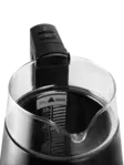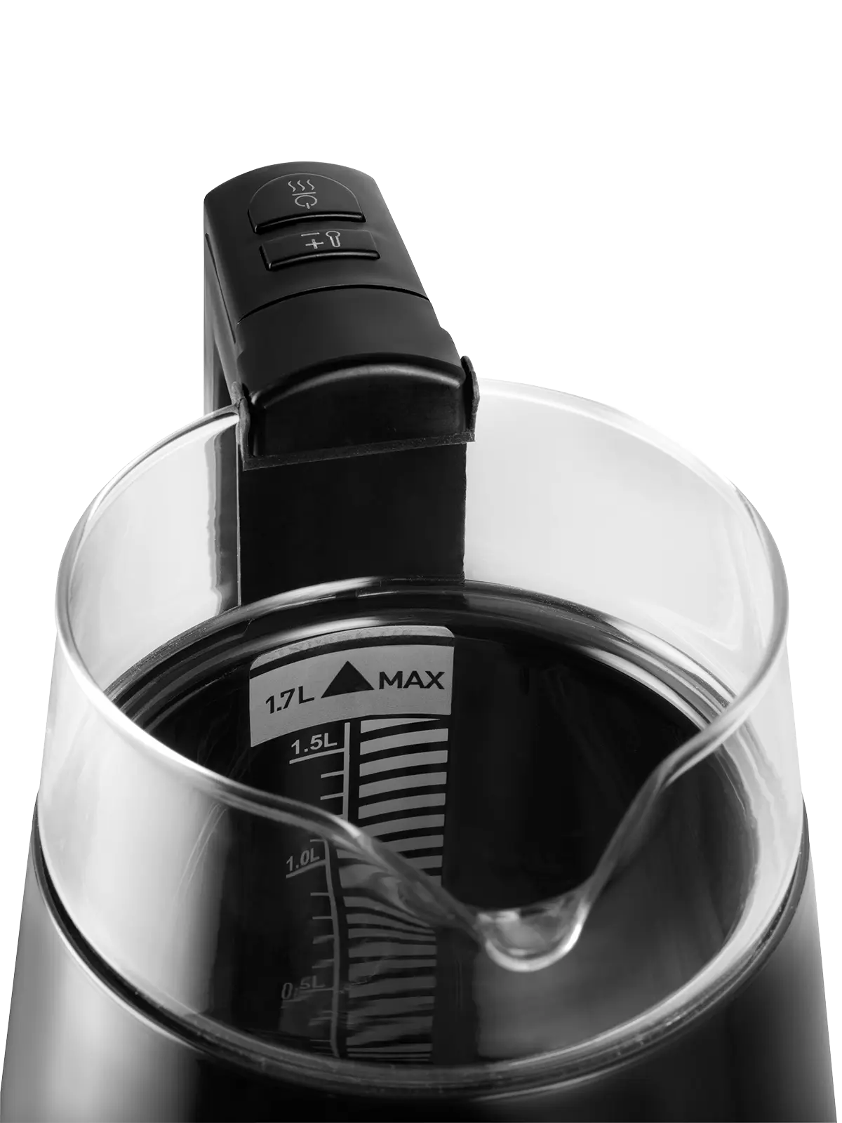 Kanvica je opatrená odnímateľným vekom s integrovaným filtrom proti usadeninám a veľkým plniacim otvorom pre pohodlné plnenie vodou. Hladké dno so skrytým vyhrievacím telesom zamedzuje usadzovaniu nečistôt. Veľký vodoznak vnútri varnej nádoby ponúka prehľad o množstve vody. Praktický je i plne otočný podstavec s priestorom pre uschovanie prebytočného kábla, na ktorý môžete kanvicu postaviť z akéhokoľvek uhla.