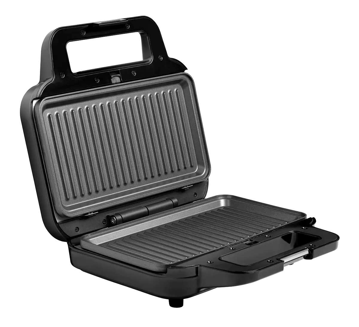Sendvičovač je opatrený svetelnou kontrolkou nahriatia. Vďaka studenému držadlu sa počas práce nespálite a bezpečnostný pánt sa postará o uzamknutie dosiek počas práce. Nechýbajú ani protišmykové nožičky pre zaistenie lepšej stability.
