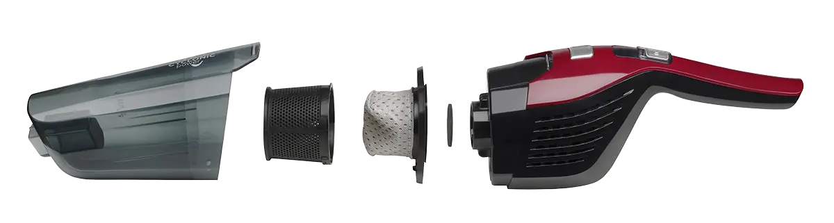 Údržba vysávača je veľmi rýchla a jednoduchá. V okamihu, kedy je nádoba na nečistoty plná, stlačíte uvoľňovacie tlačidlo na hornej strane vysávača, nádobu uvoľnite, vyberiete filter a nečistoty vysypte. Vyprázdnenú nádobou opäť vložte do vysávača.