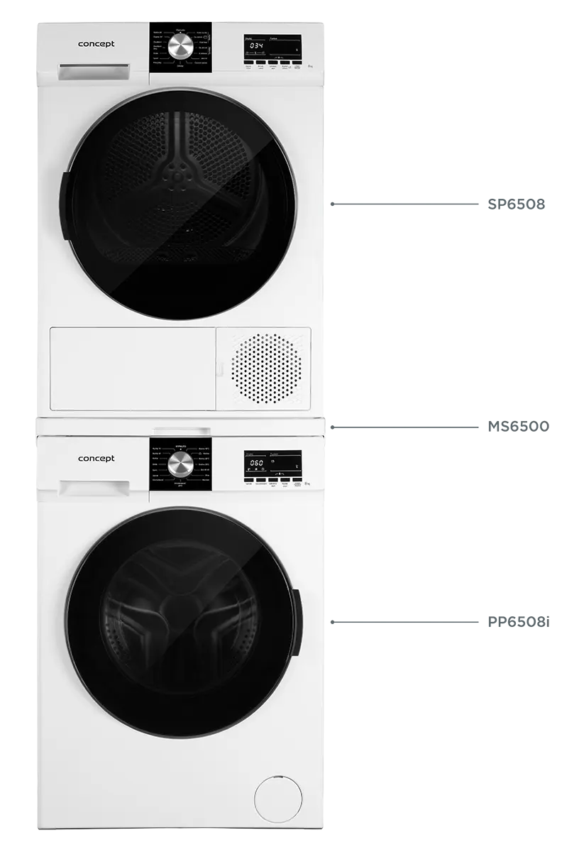 Spojovací medzikus Concept MS6500 vám pomôže efektívne využiť priestor nad práčkou. Bezpečne s ním upevníte sušičku nad práčku do tzv. komínového zostavenia, čím vyriešite problém s nedostatkami miesta. Medzikus oba spotrebiče perfektne zafixuje a opticky zladí.